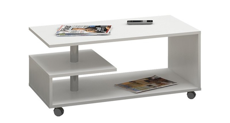 Masa de cafea, placa laminata, pe roti, alb, 90x51x40 cm, Vini
