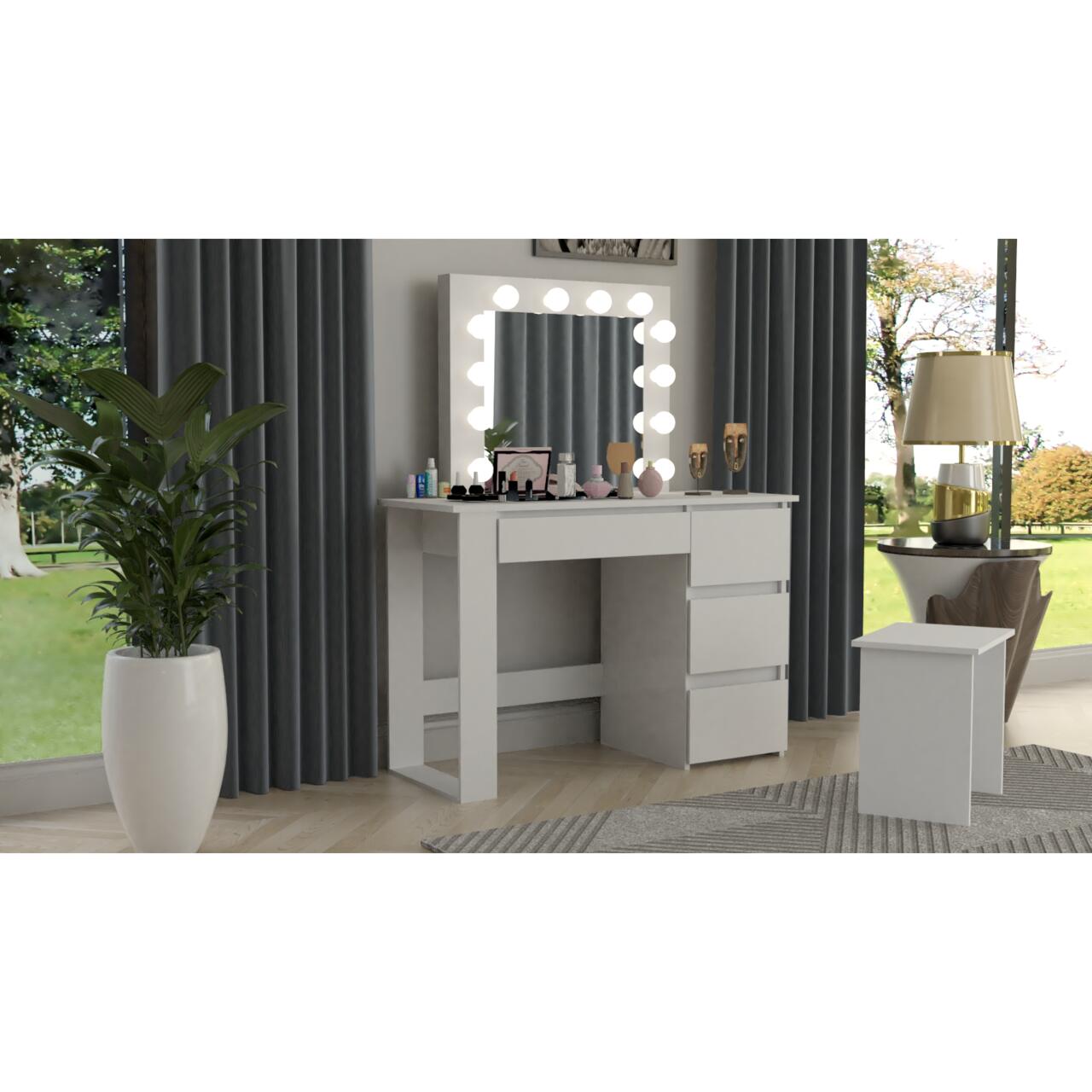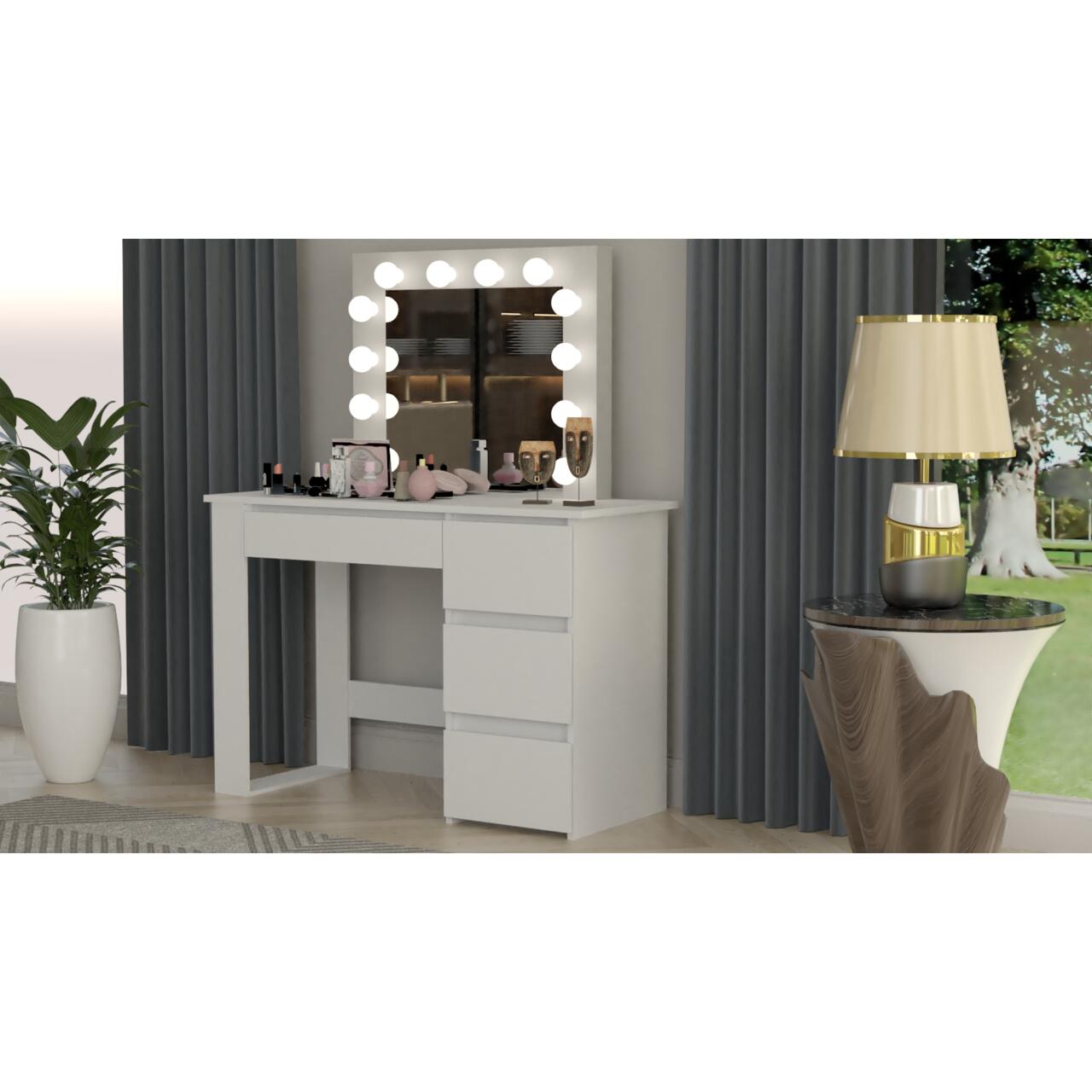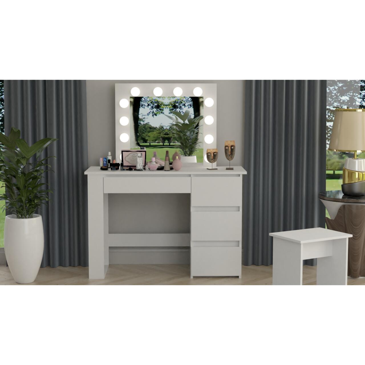 Masa de toaleta/machiaj, alb, cu oglinda si LED-uri, Irma, 100x43x141 cm