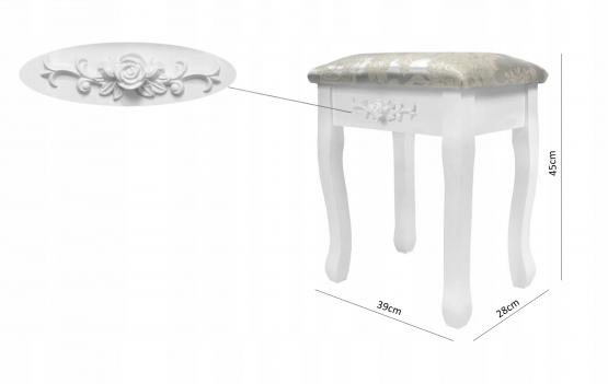 Setul include, de asemenea, un scaun confortabil, tapitat, cu un model floral, care va adauga farmec si eleganta camerelor dumneavoastra.
