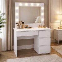Masa de toaleta/machiaj, Irina, alba, cu oglinda si LED-uri, 94x43x141 cm