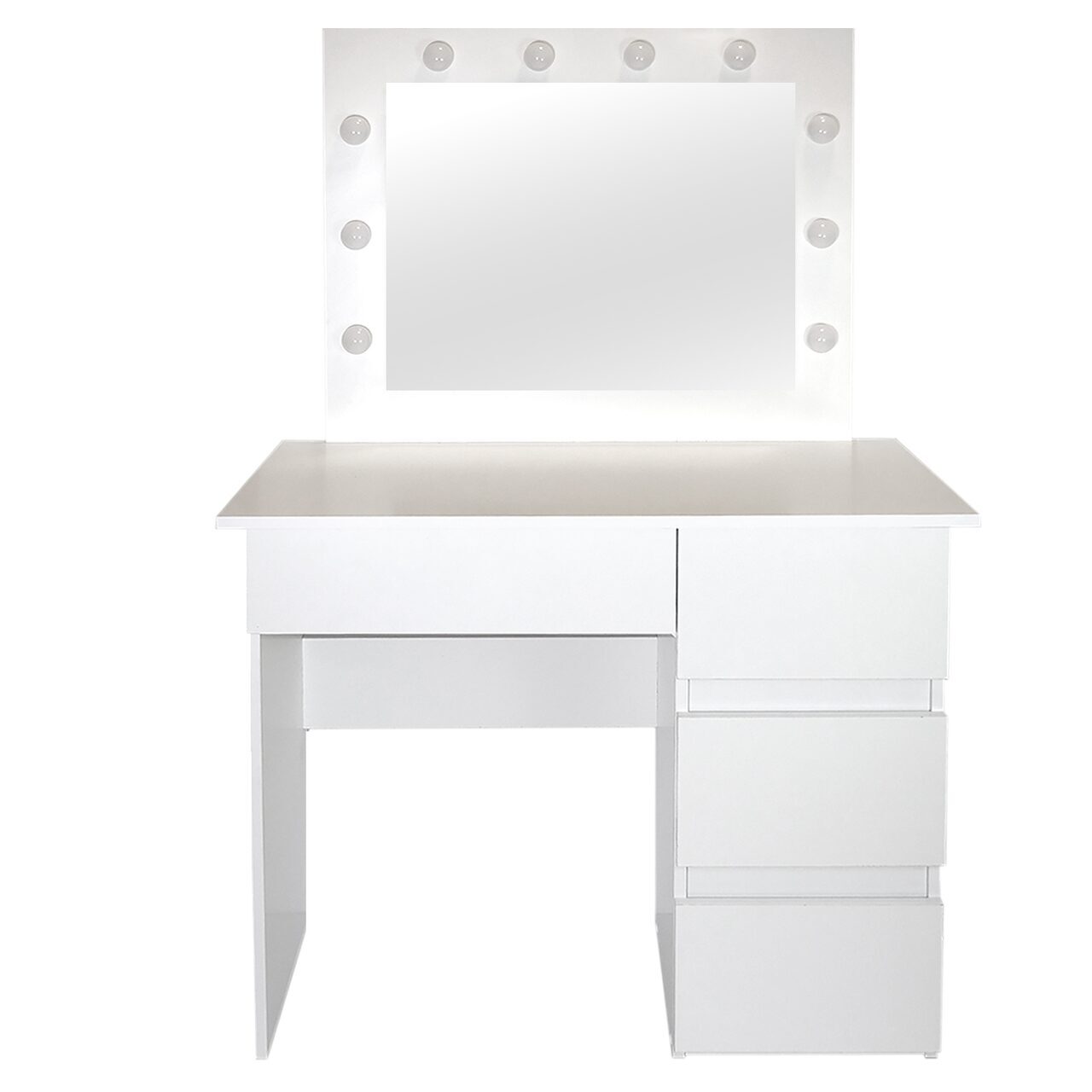 Masa de toaleta alba pentru machiaj cu oglinda si 10 leduri este cu siguranta visul oricarei femei.