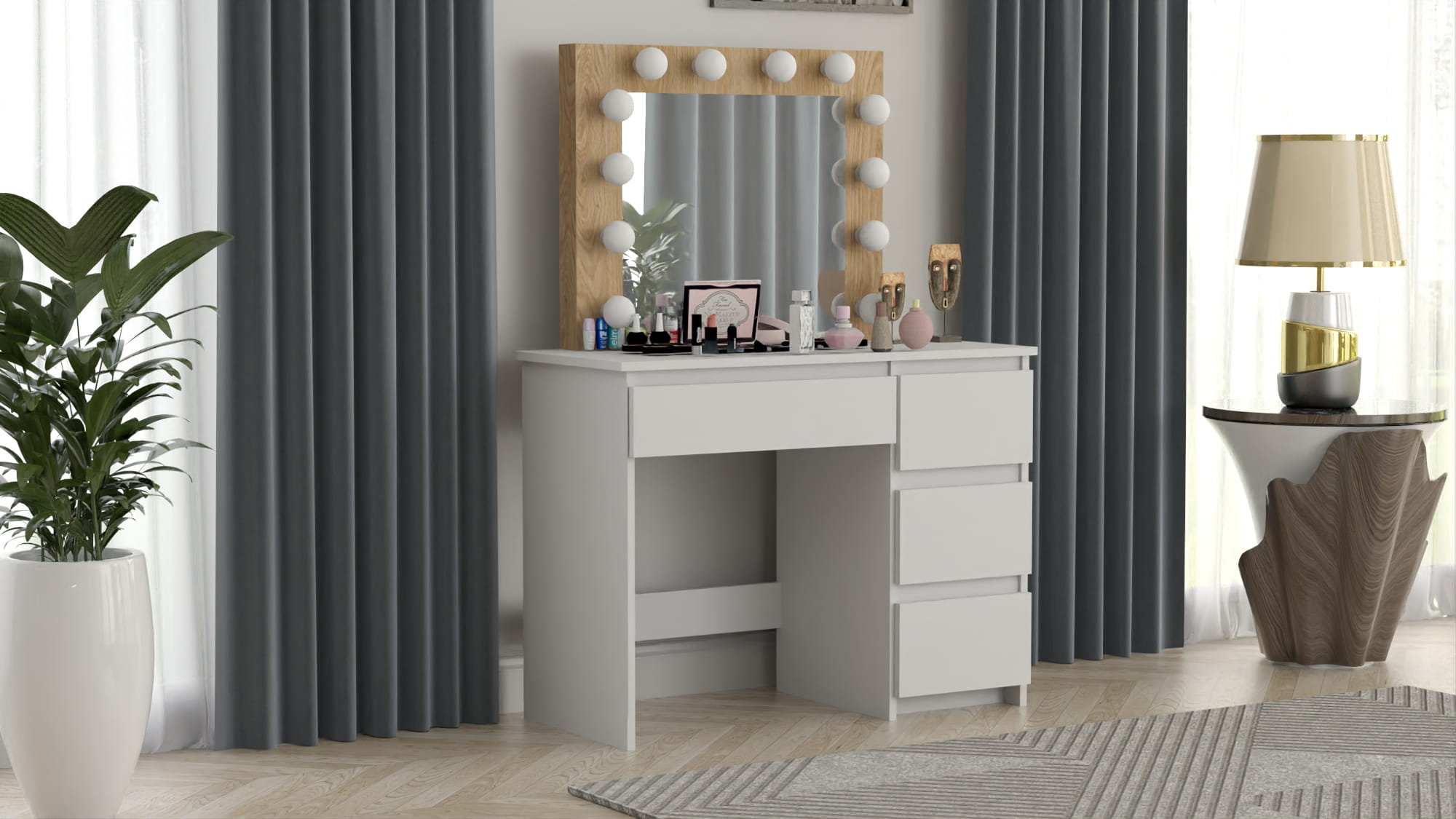 - Spatiu generos de depozitare: Dispune de 4 sertare care permit organizarea eficienta a produselor cosmetice si a accesoriilor