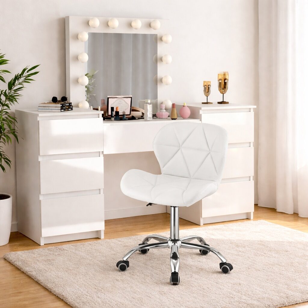 Pachetul include, de asemenea, un scaun foarte confortabil, in stil modern, care se va asorta perfect cu masa de machiaj!