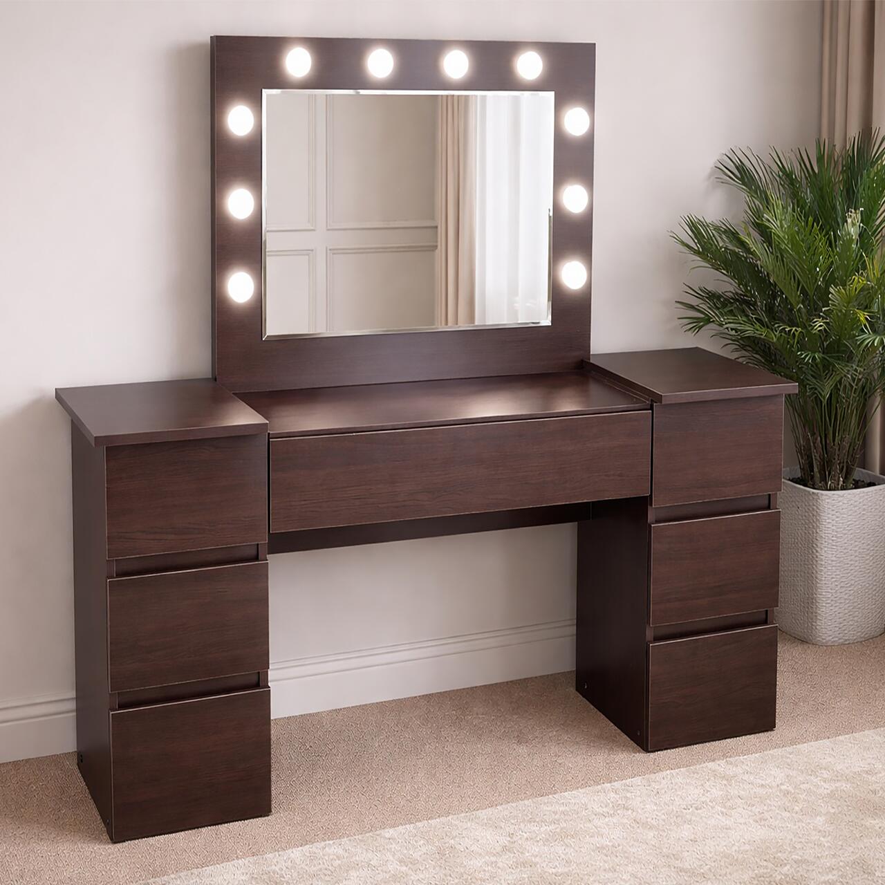 Masa de toaleta/machiaj, Antonia, wenge, cu oglinda si LED-uri, 155x42x135 cm