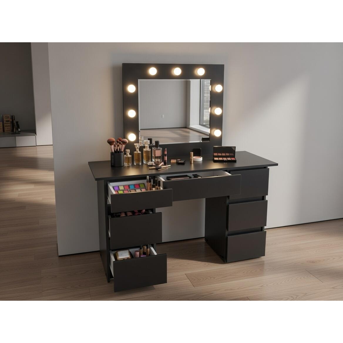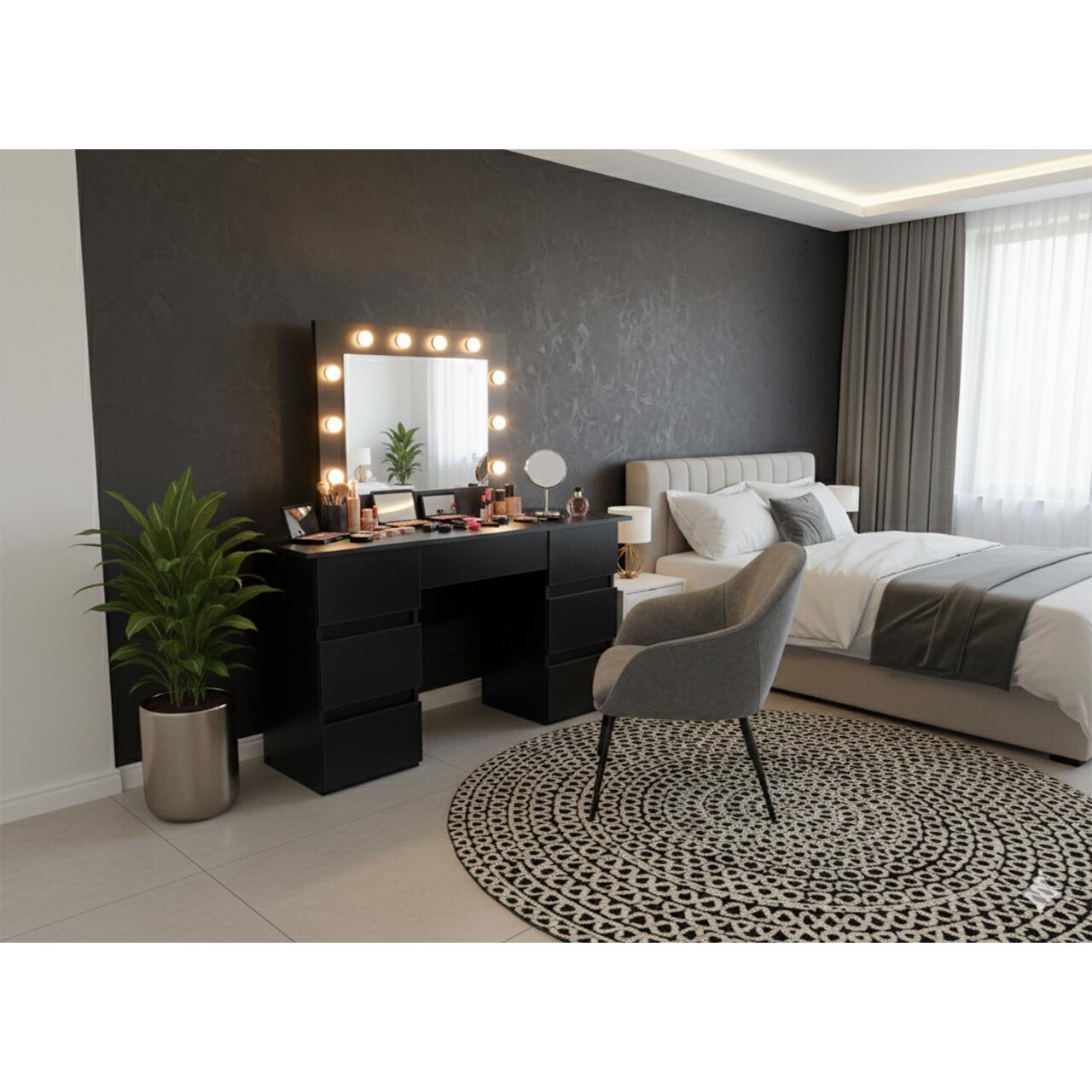 Masa de toaleta/machiaj, Vanessa, negru, cu oglinda si LED-uri, 130x43x143 cm