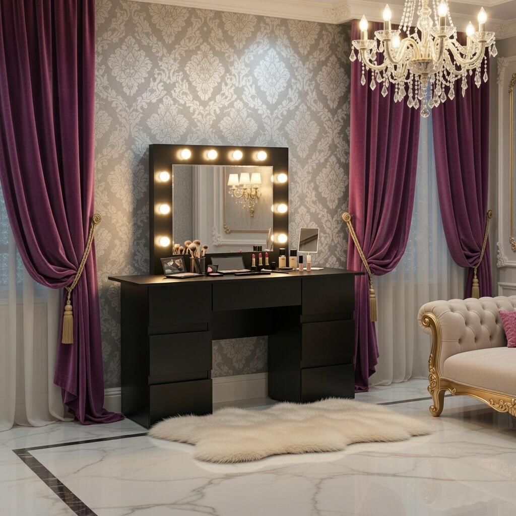 Masa de toaleta/machiaj Vanessa este o piesa de mobilier eleganta si practica, proiectata pentru a satisface nevoile si preferintele persoanelor care cauta un spatiu dedicat pentru a-si ingriji frumusetea si a-si stoca cosmeticele si bijuteriile.