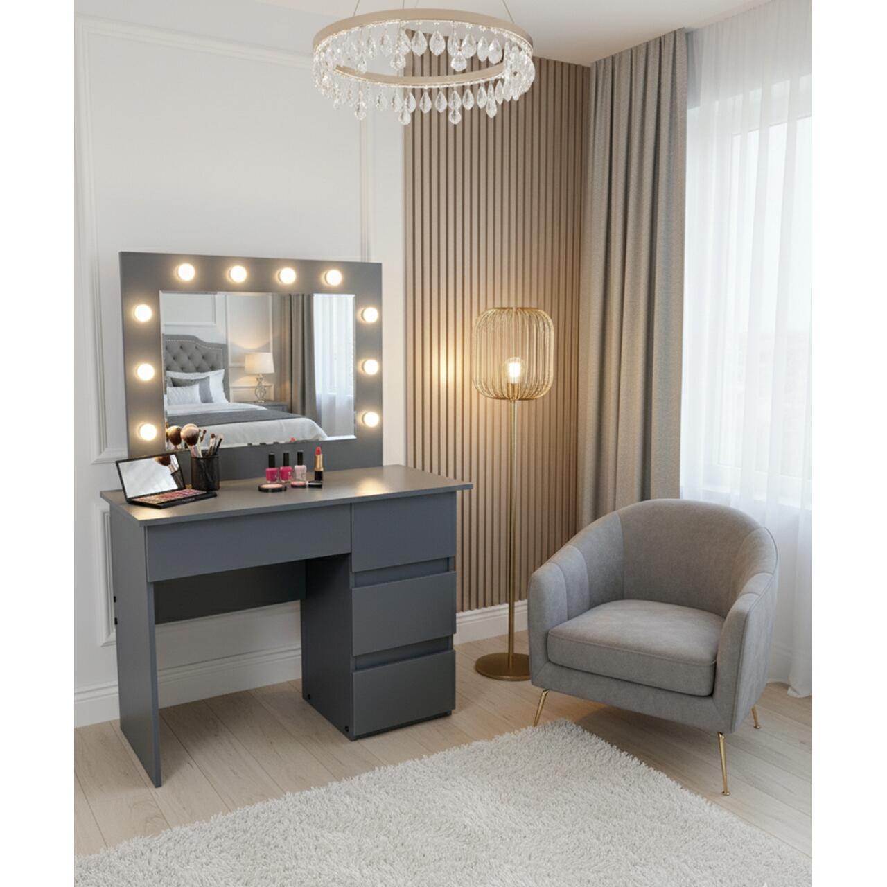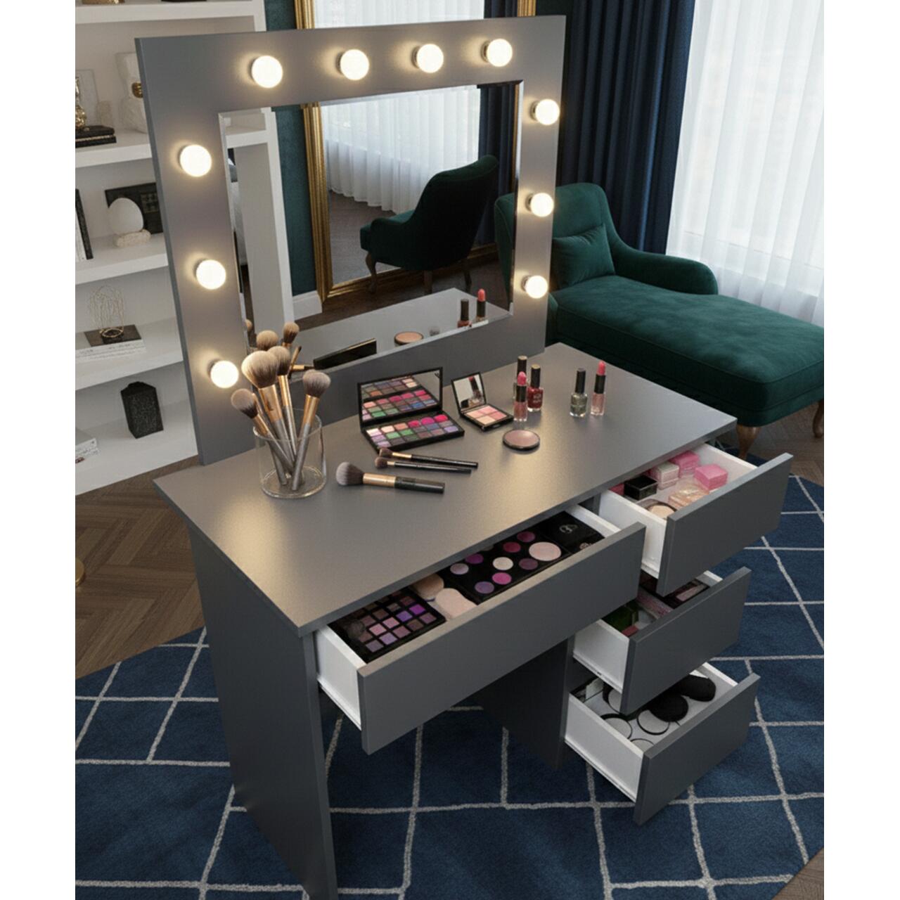 Masa de toaleta/machiaj, Irina, antracit, cu oglinda si LED-uri, 94x43x141 cm