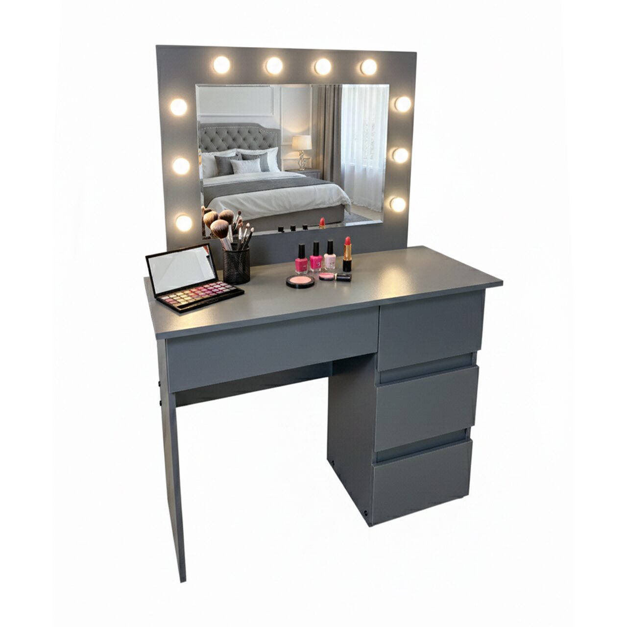 Design modern si finisaj Antracit: Cu un aspect natural si elegant, aceasta masa de machiaj se potriveste cu diverse stiluri de decor – de la minimalist la contemporan sau clasic modern.