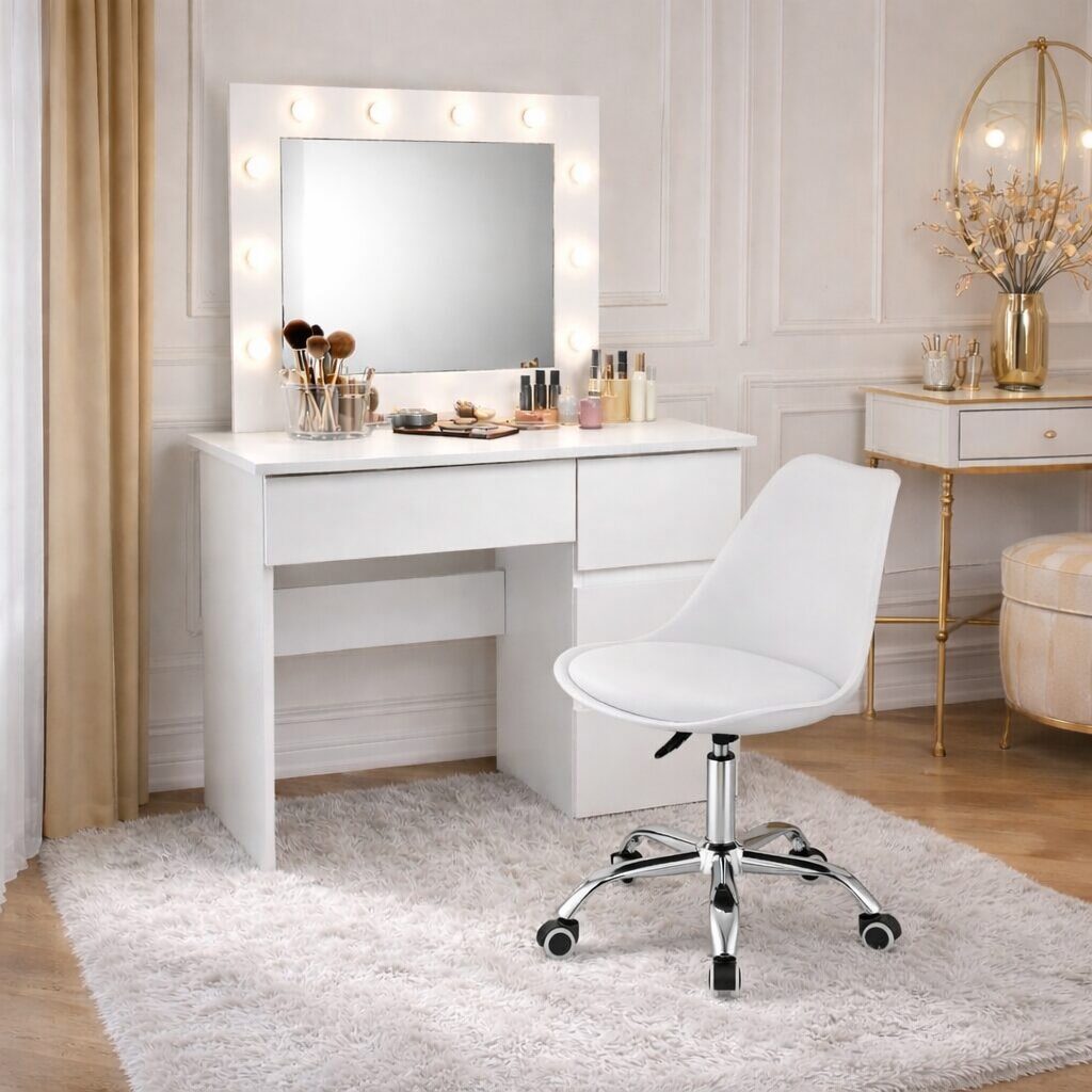 Pachetul include, de asemenea, un scaun foarte confortabil, in stil modern, care se va asorta perfect cu masa de machiaj!
