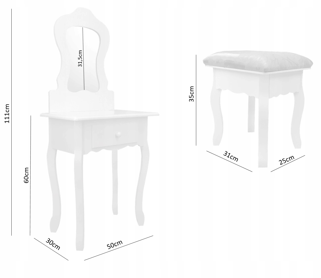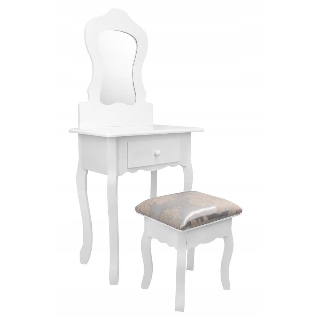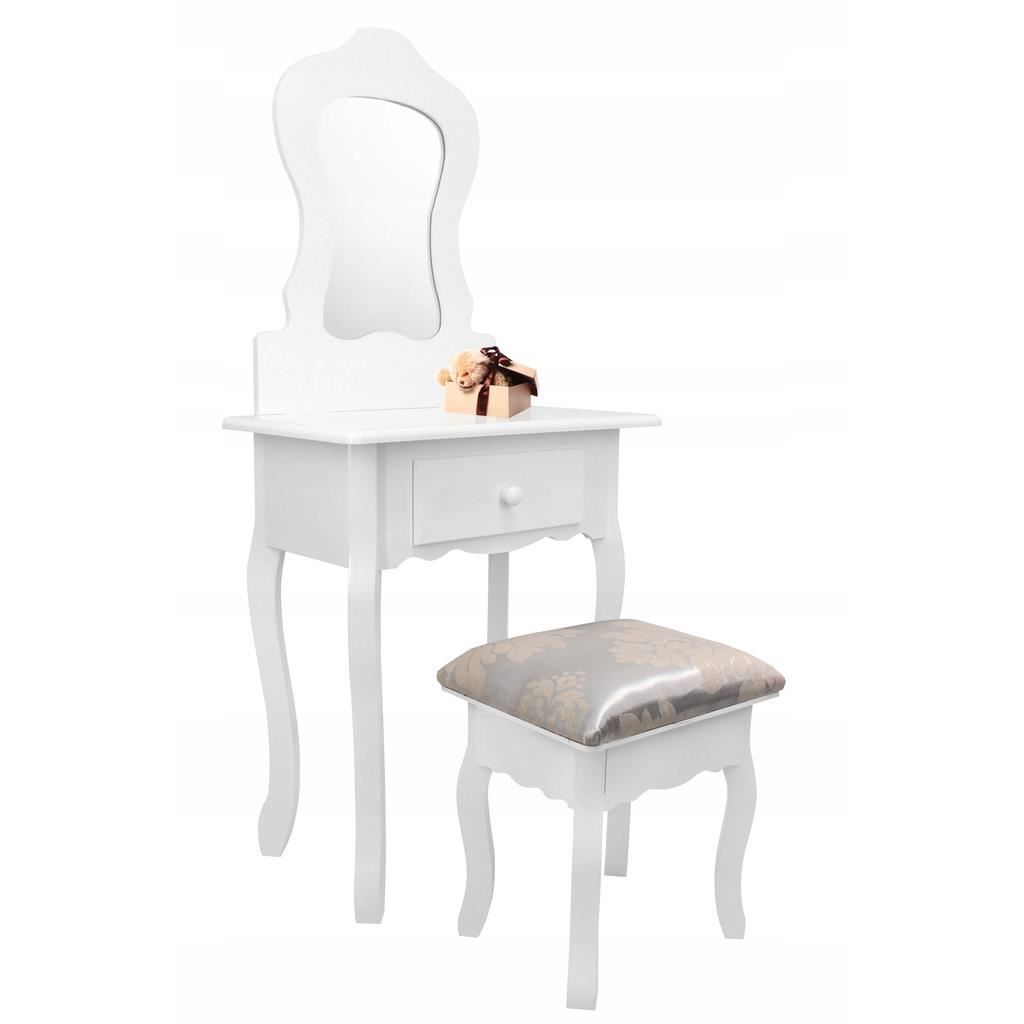 Masa de toaleta, machiaj, pentru copii, cu oglinda, sertar si taburet, alb, 50x30x111 cm