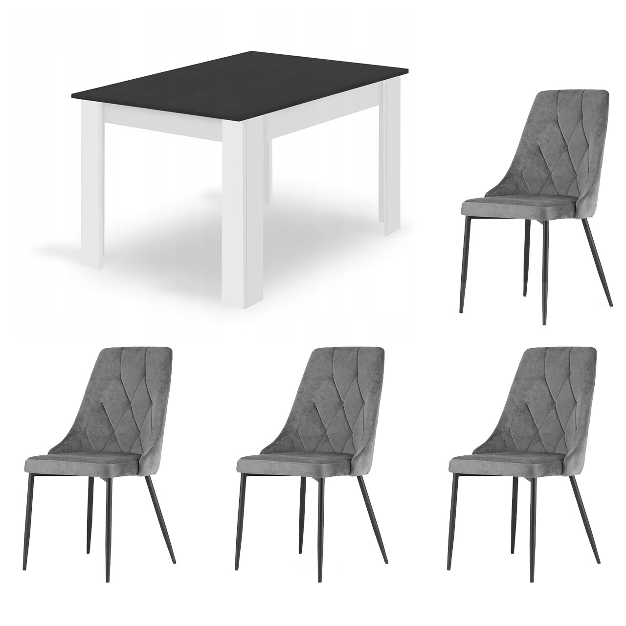 Masa pentru sufragerie/living + 4 scaune Imola, Artool, lemn, alb si negru, 120x80x75 cm