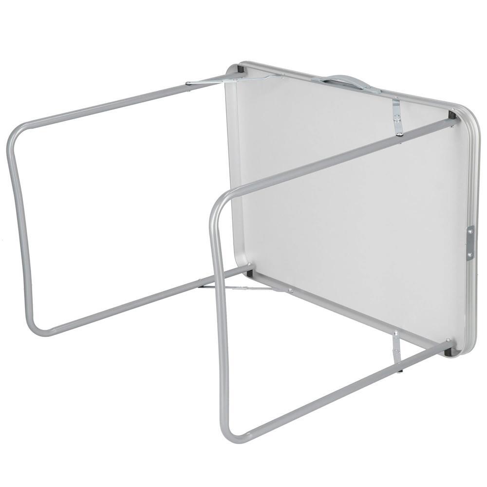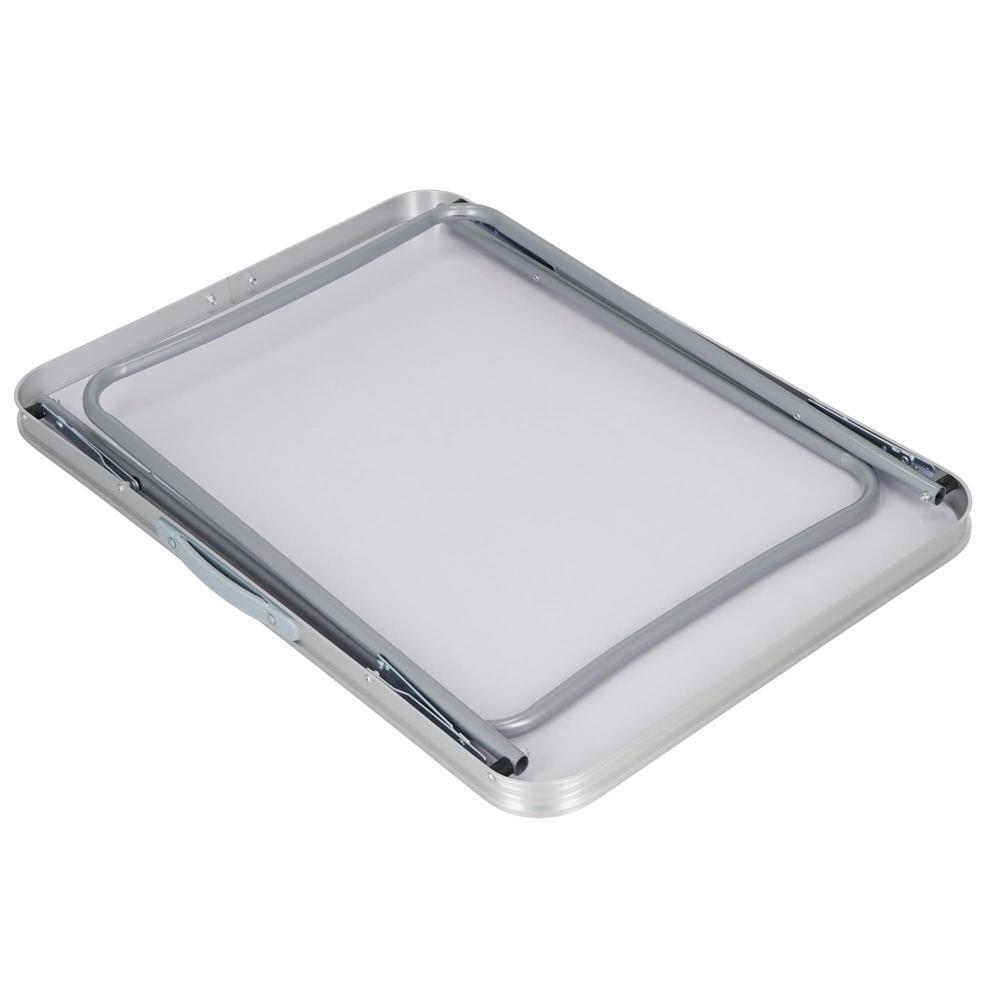 - Posibilitatea de a plia masa sub forma unei valize cu maner face ca transportul, dar si depozitarea sa se efectueze in cel mai simplu mod. Poate fi mutata usor deoarece are o greutate redusa si nu va ocupa spatiu in casa, garaj sau in portbagaj.