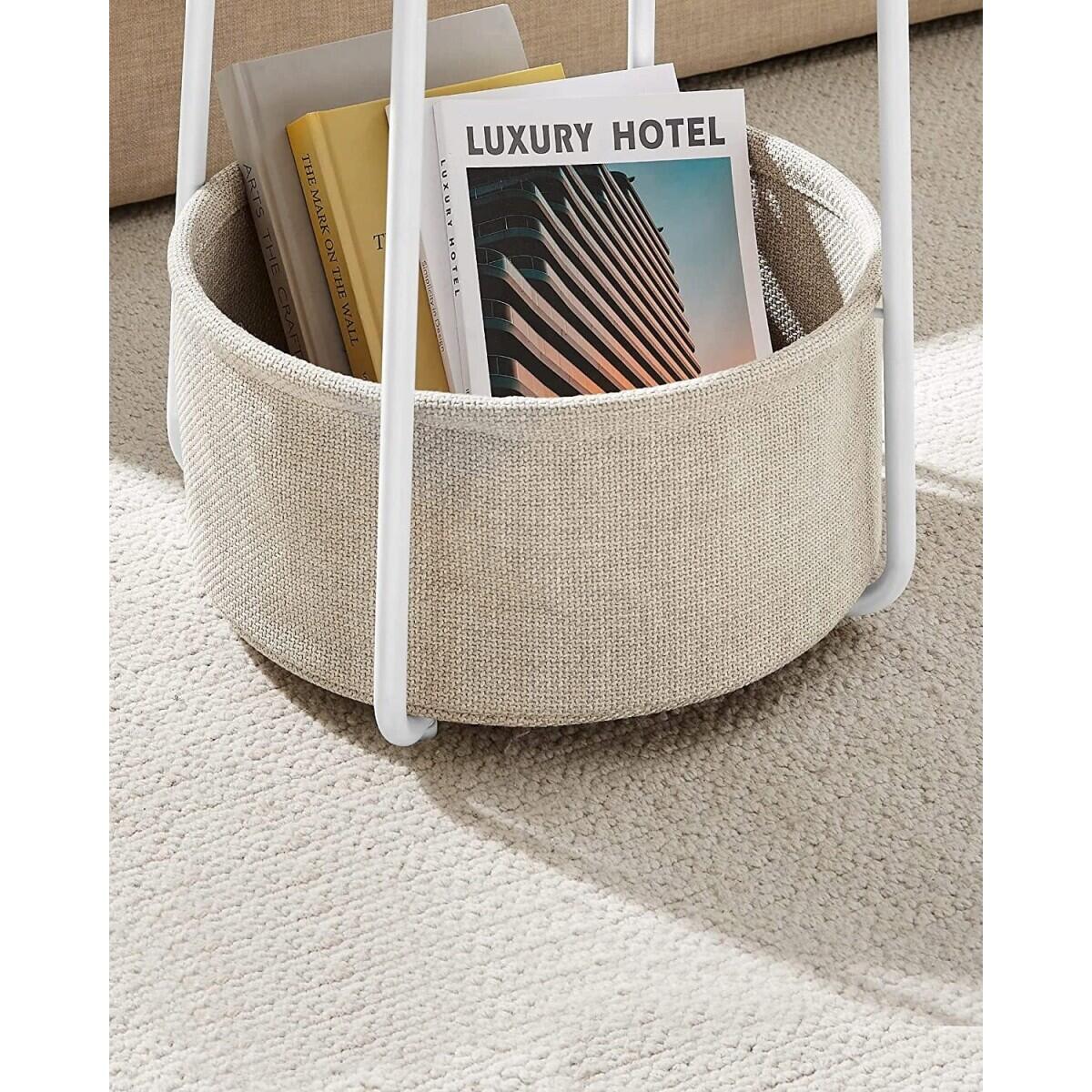 Masa rotunda cu cos depozitare, pal, baza otel, alb si bej, 45x50 cm, Artool