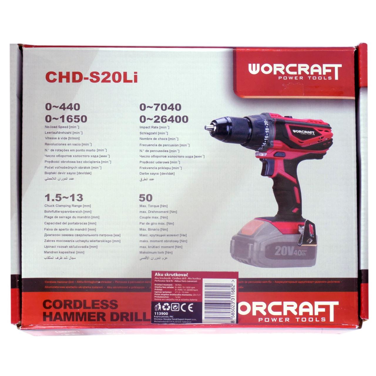 Masina de gaurit, insurubat (bormasina), cu percutie, cu acumulator 4 Ah Li-ion, 20 V, incarcator, mandrina 13 mm, Worcraft