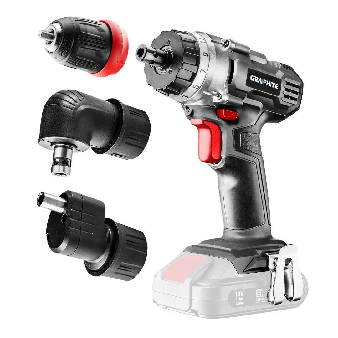 Masina de gaurit, insurubat (bormasina), pe acumulator, 18 V Li-ion (acumulator neinclus), 3 mandrine detasabile, mandrina 10 mm, Graphite Energy