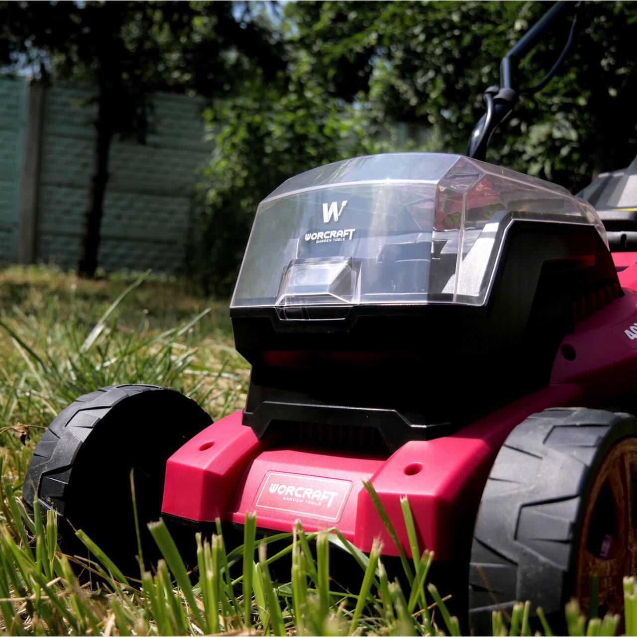Masina de tuns iarba fara fir de la Worcraft combina beneficiile masinilor de tuns electrice cu libertatea de lucru.