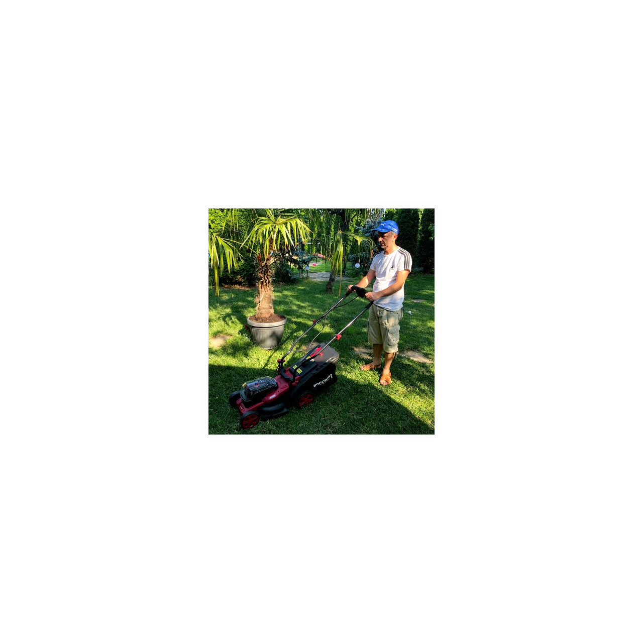 - Este echipata cu un colector de iarba, al carui volum este de 35 de litri, si este realizat din plastic usor. Aceasta inseamna ca nu trebuie sa pierzi timpul pentru a colecta iarba taiata. Colectorul poate fi asamblat cu usurinta si il poti folosi ulterior pentru mulcire.