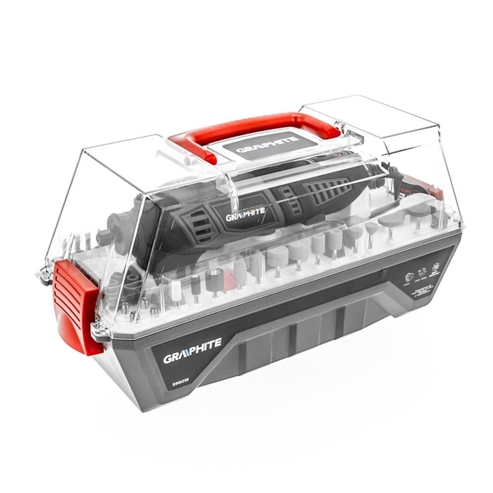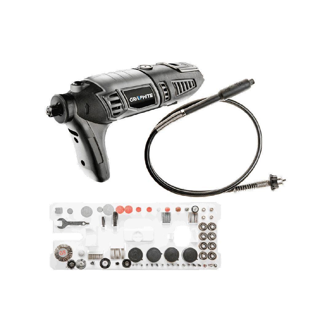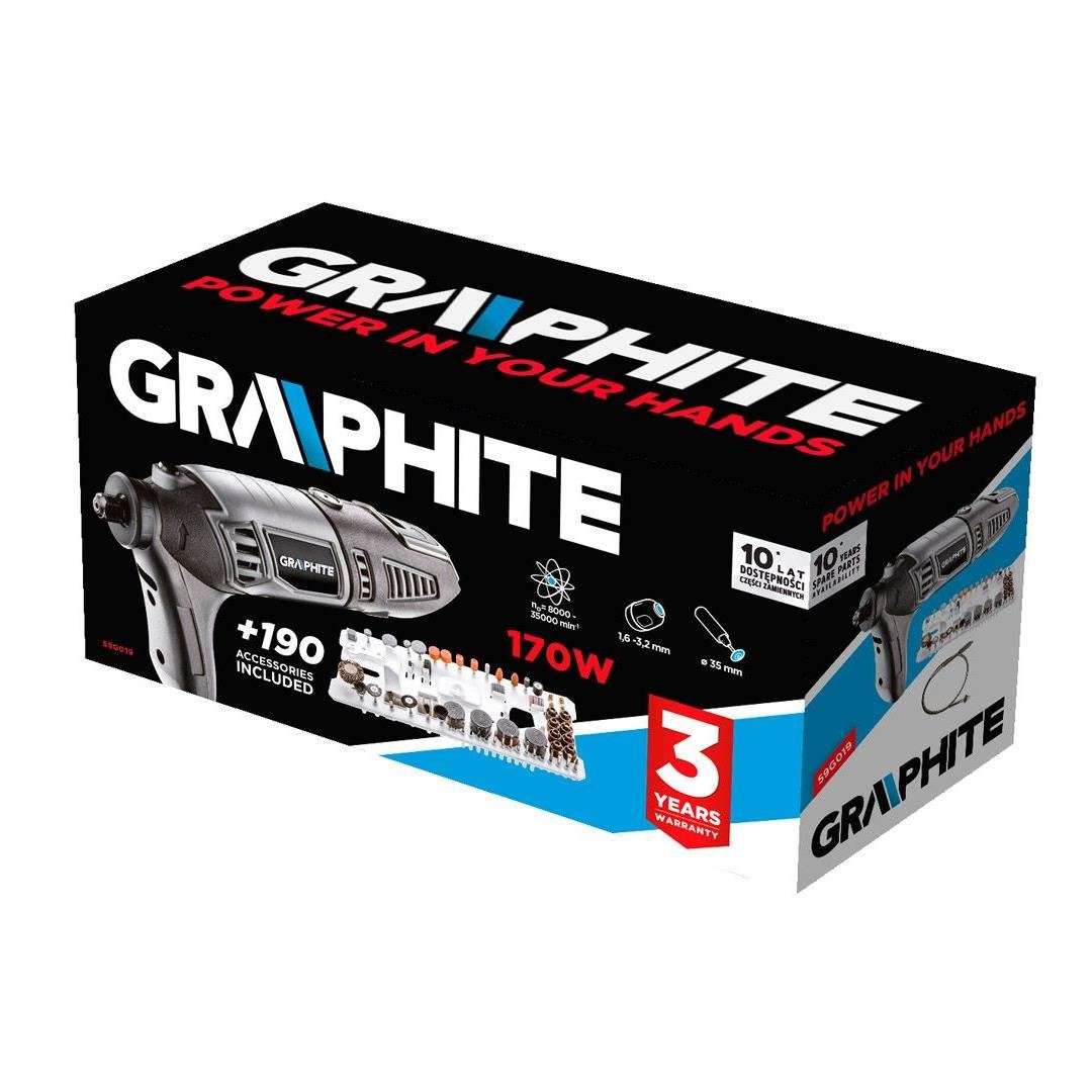 Mini polizorul Graphite cu o putere de 170 W va sta la indemana pentru o gama larga de aplicatii pentru taierea, slefuirea, lustruirea precum si gaurirea diverselor materiale.