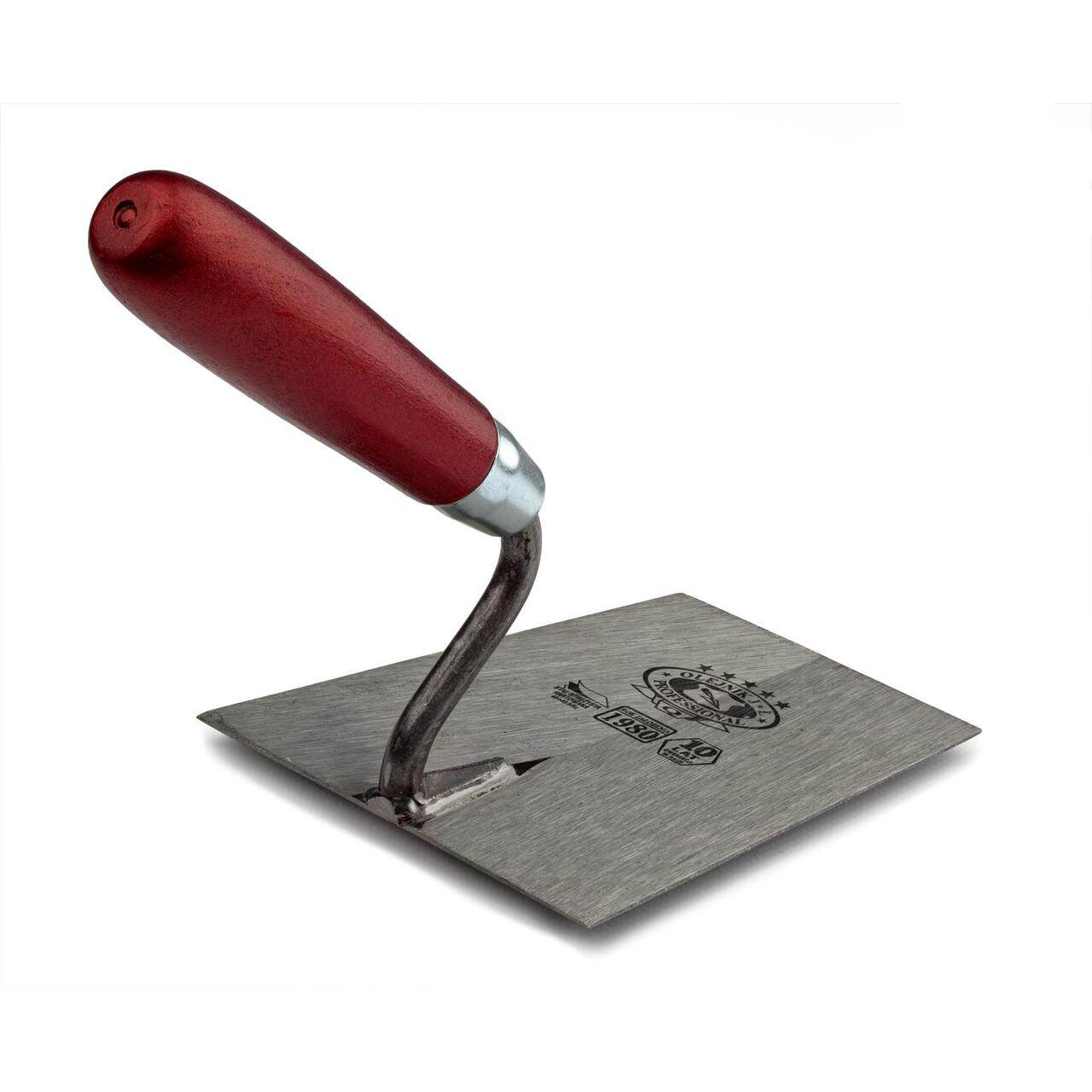Mistrie otel intarit, Olejnik, trapez, lata, 140 mm, maner lemn, rosu