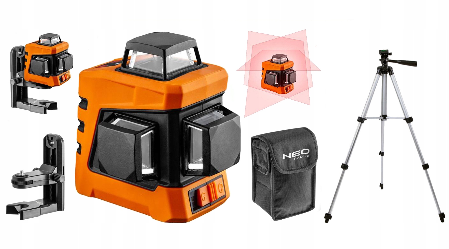 Nivela laser, 360° 3D, rosu, cu carcasa si suport magnetic, 15 m, NEO