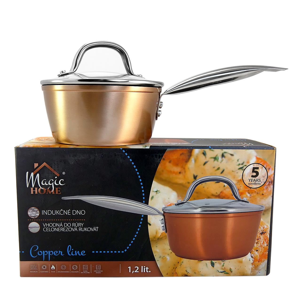 Oala cu capac sticla YENA, maner INOX, 1.2 L, 16 cm, antiaderenta, Copper Line, MAGIC HOME