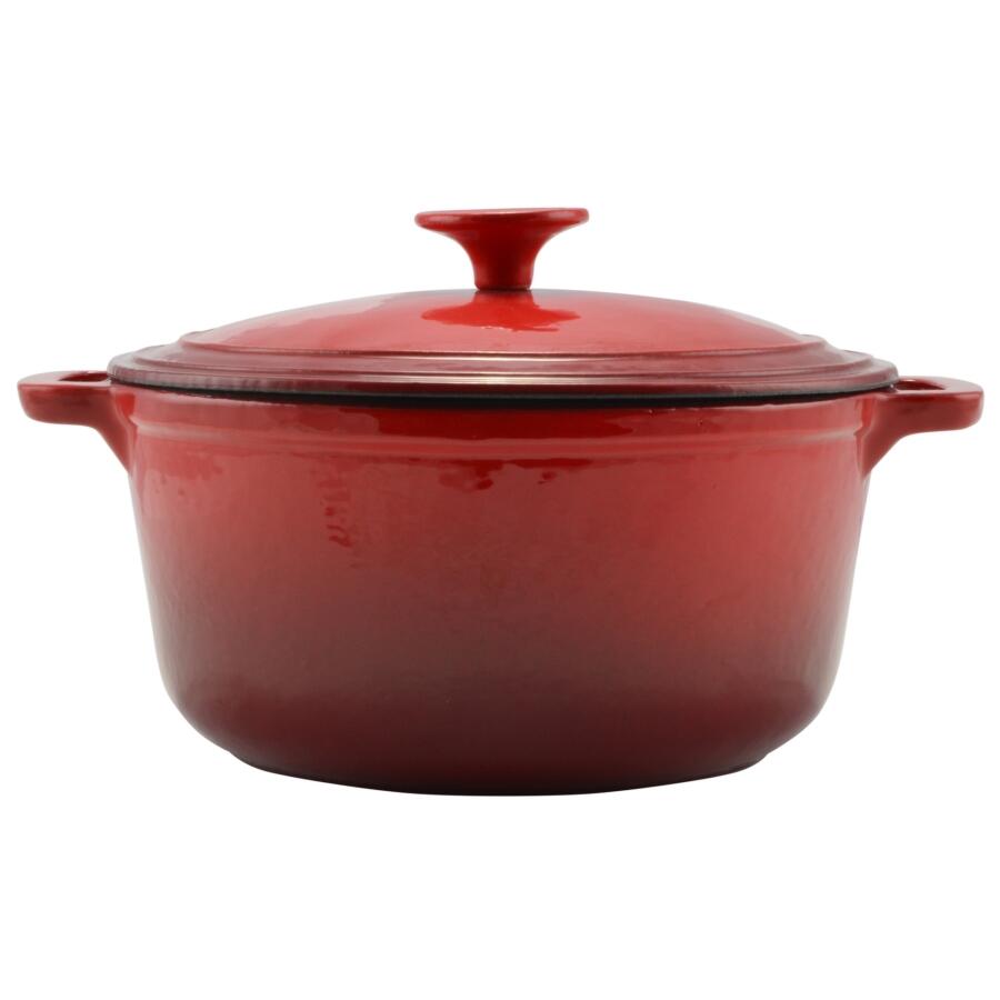 Oala de fonta emailata cu capac, rosie, 6.5 L, Perfect Home