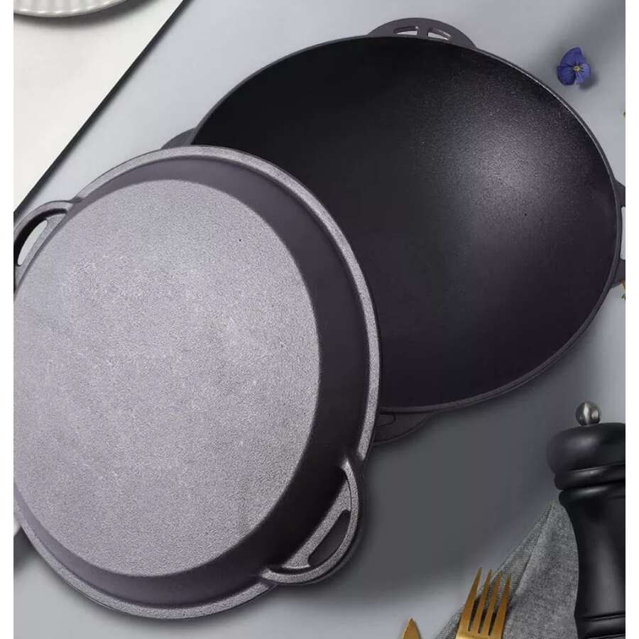Oala de fonta tip wok, cu capac, 3 in 1, 32x14 cm, Perfect Home
