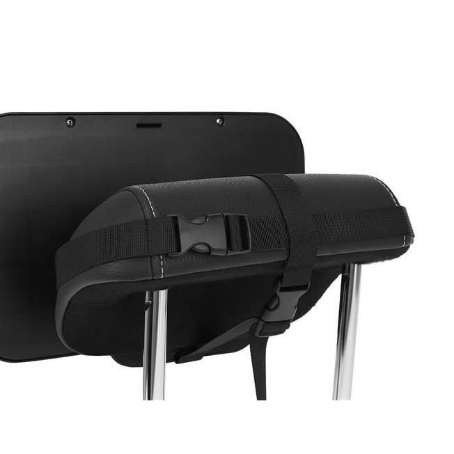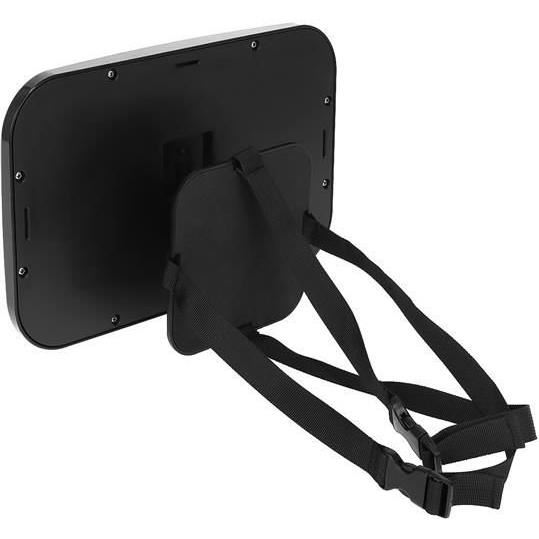 - 4 BRETELE - comparativ cu concurenta, MODELUL NOSTRU are 4 chingi fixate vertical si orizontal, care tin ferm tetiera si nu se vor desface; nu exista nici o posibilitate ca oglinda sa alunece si sa cada peste copil! Curelele sunt prinse cu catarame si, in plus, pot fi reglate, datorita carora se vor adapta oricarui model de tetiera, indiferent de marca si dimensiunea masinii. Baza, care este montata pe tetiera, are o suprafata anti-alunecare, care impiedica suplimentar miscarea oglinzii.