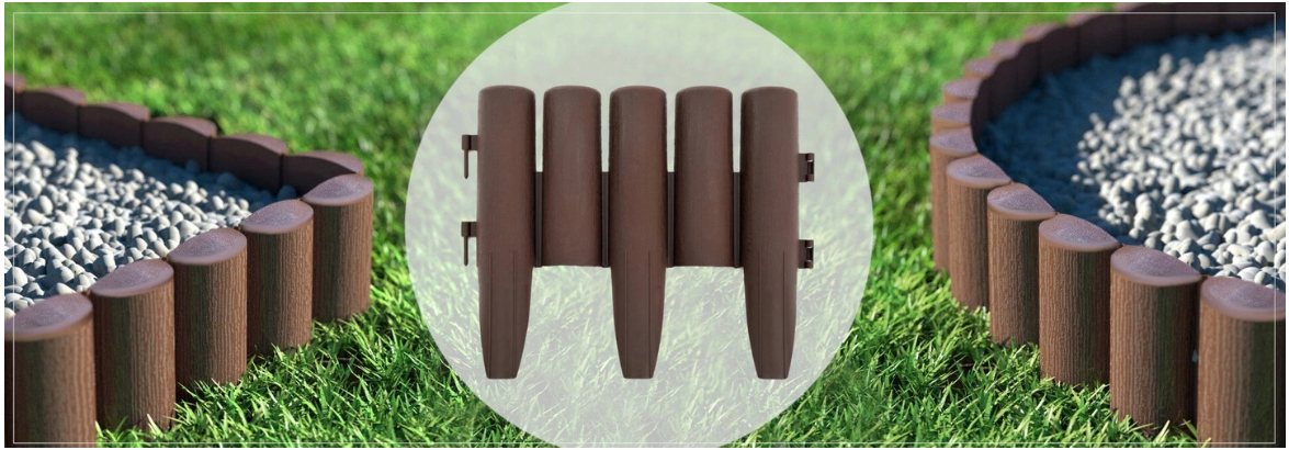 Palisada/bordura pentru gradina, maro, set 8 buc, 27x24 cm, 2.16 m
