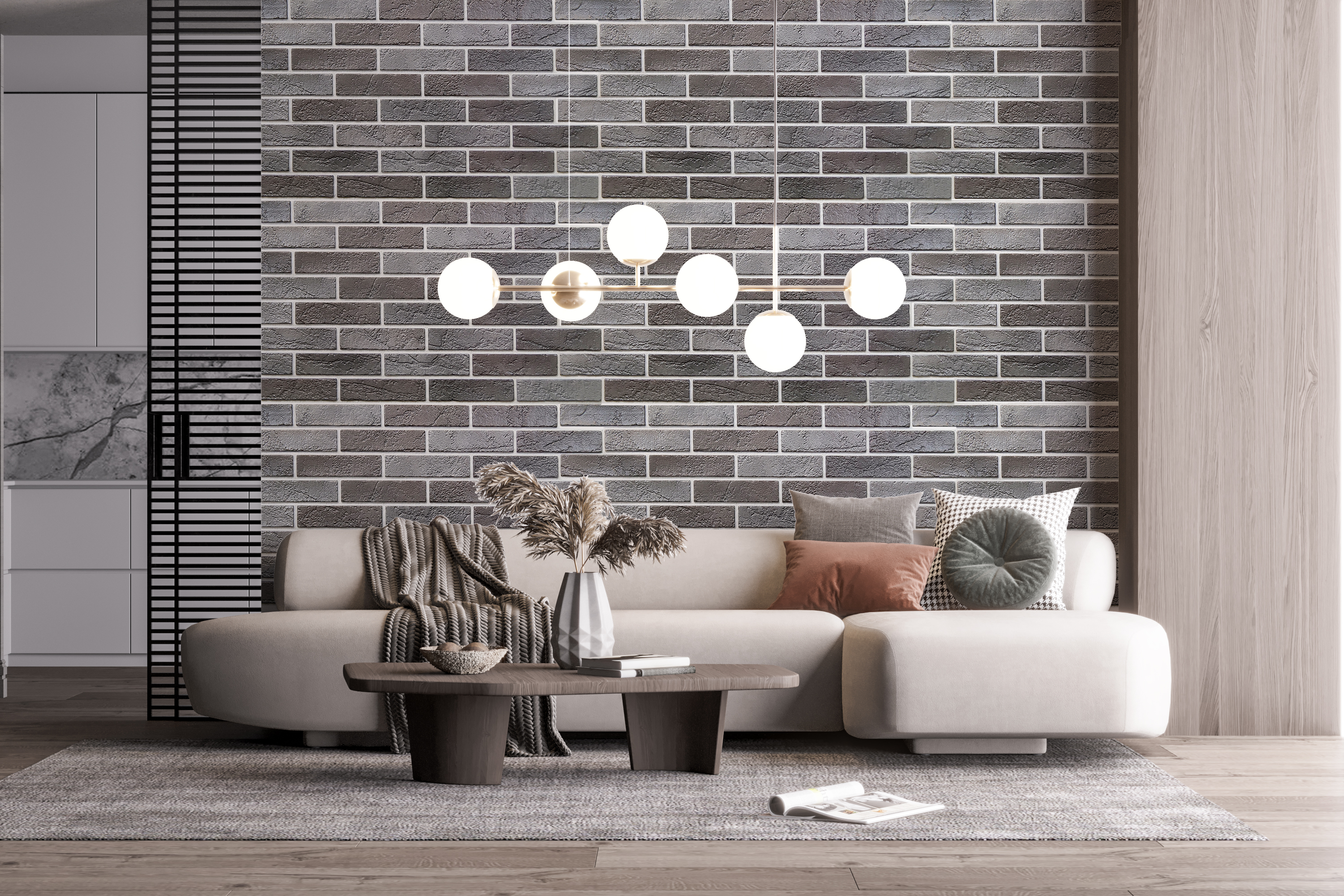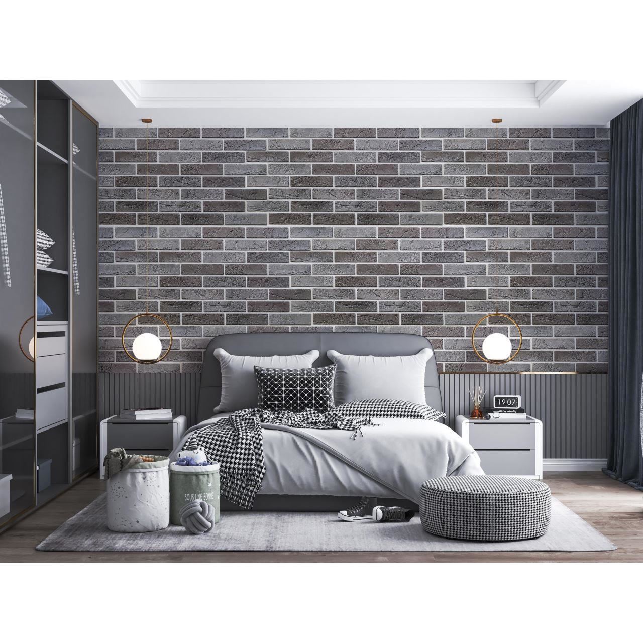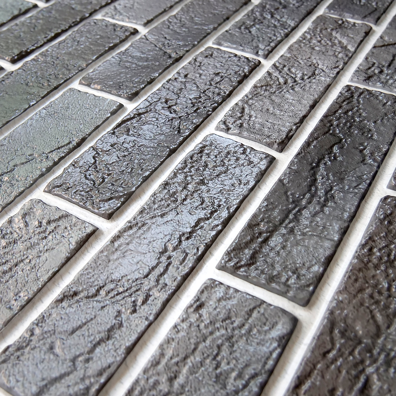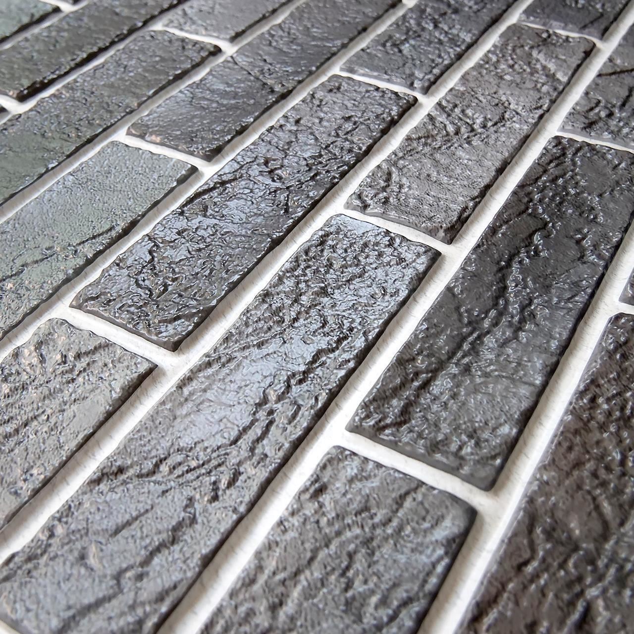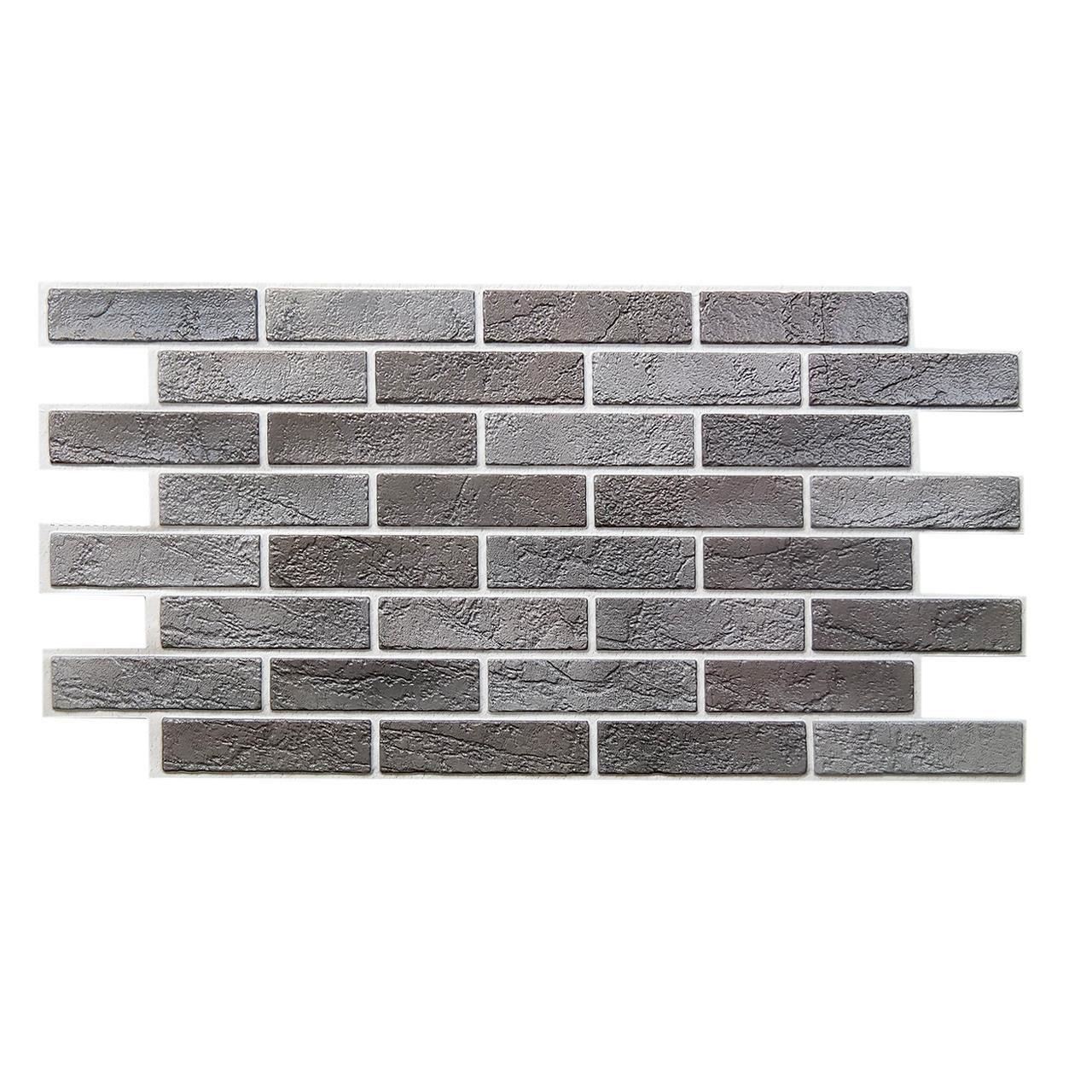 Panou decorativ, PVC, model caramida 3D, nuante cenusiu inchis, 96x48.5cm