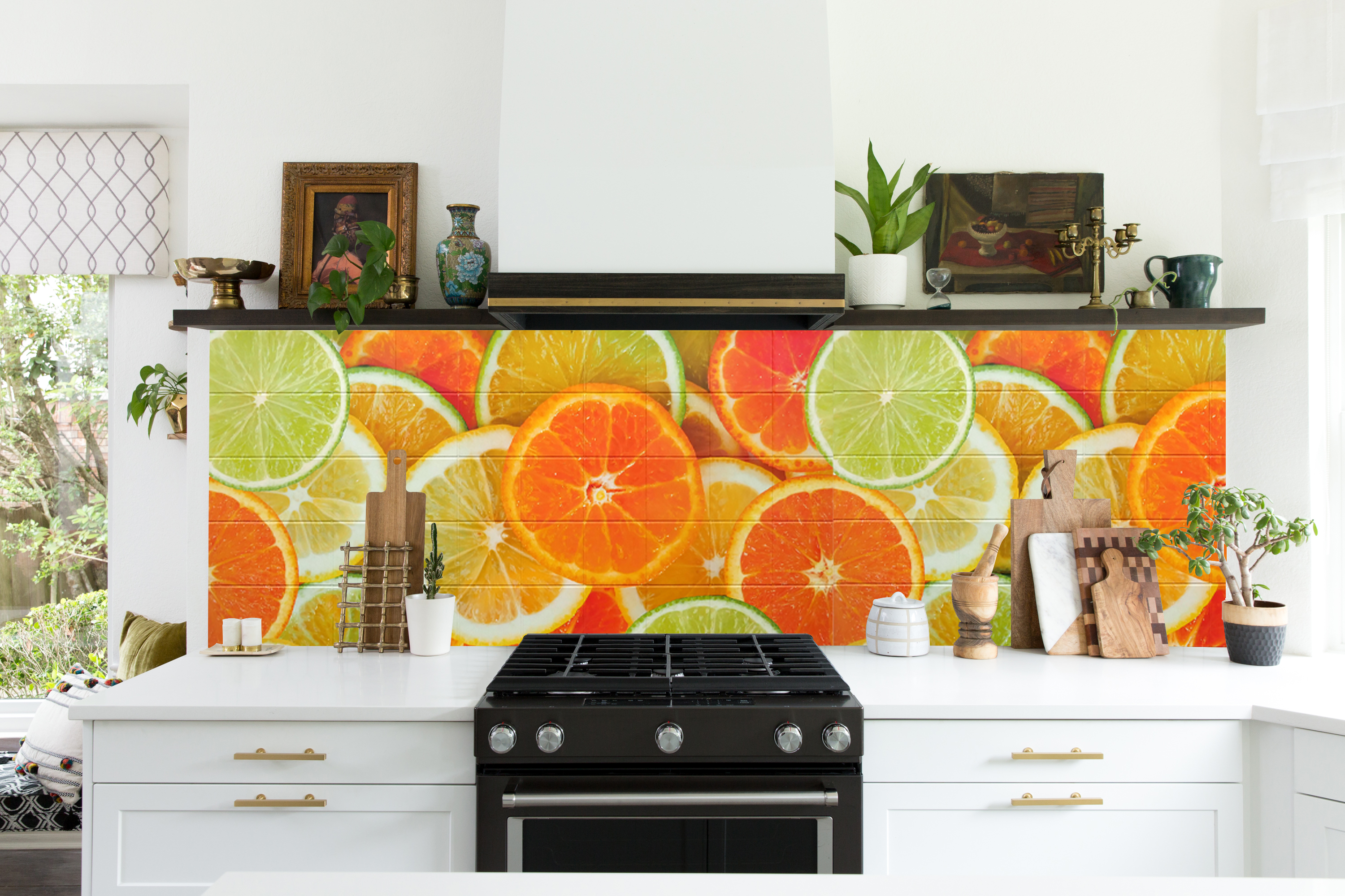 Panou decorativ, PVC, model citrice, portocaliu, 96x48.5cm