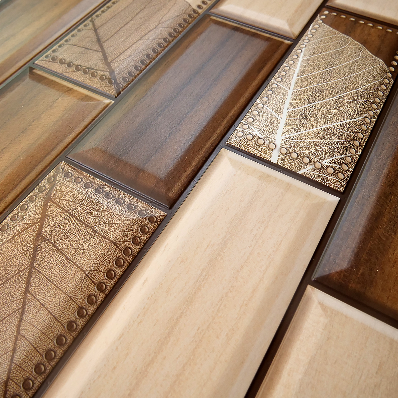 Panou decorativ, PVC, model lemn 3D, nuante maro inchis, 96x48.5 cm