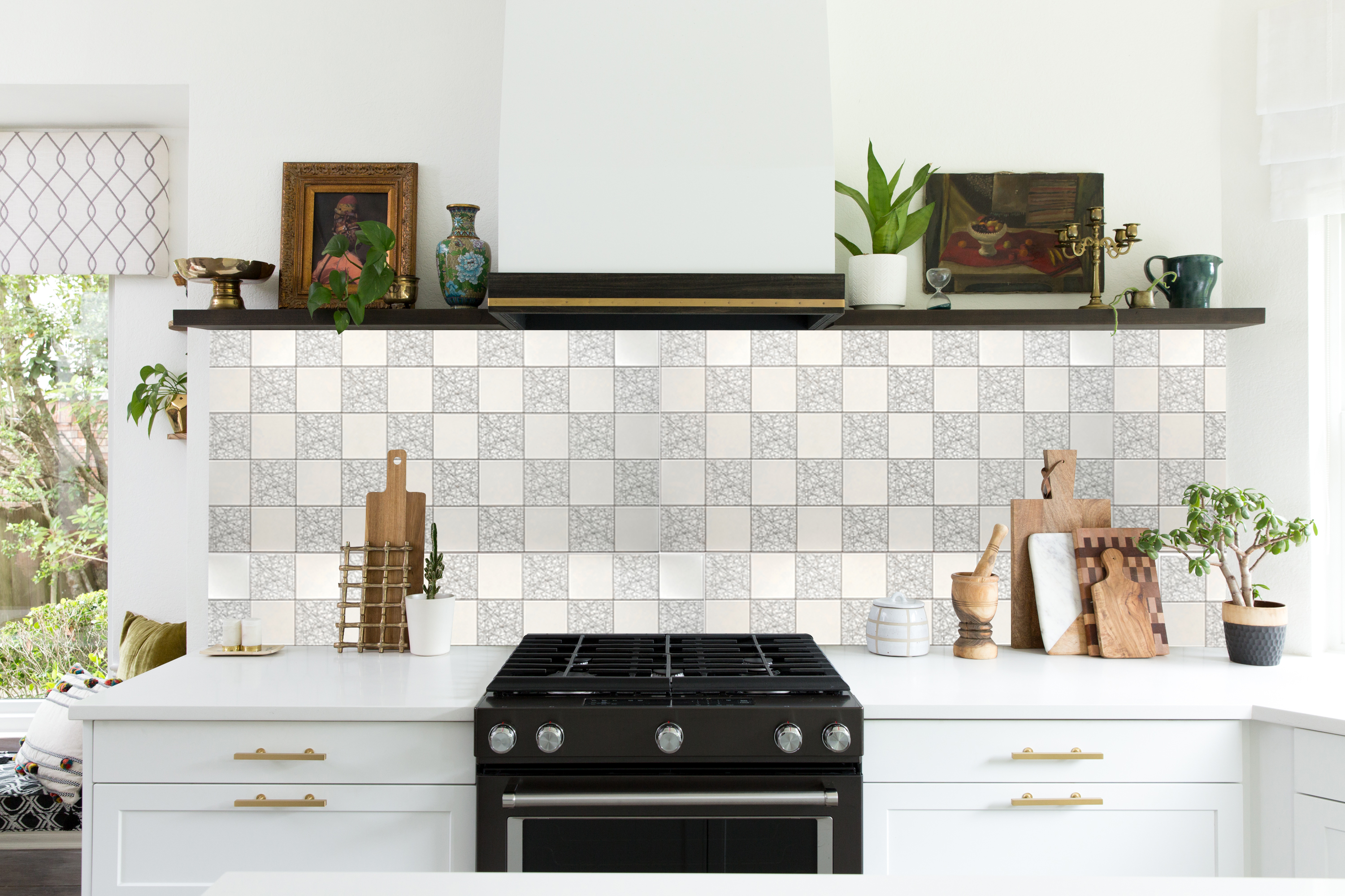 Panou decorativ, PVC, model marmura, alb si gri, 96x48.5cm