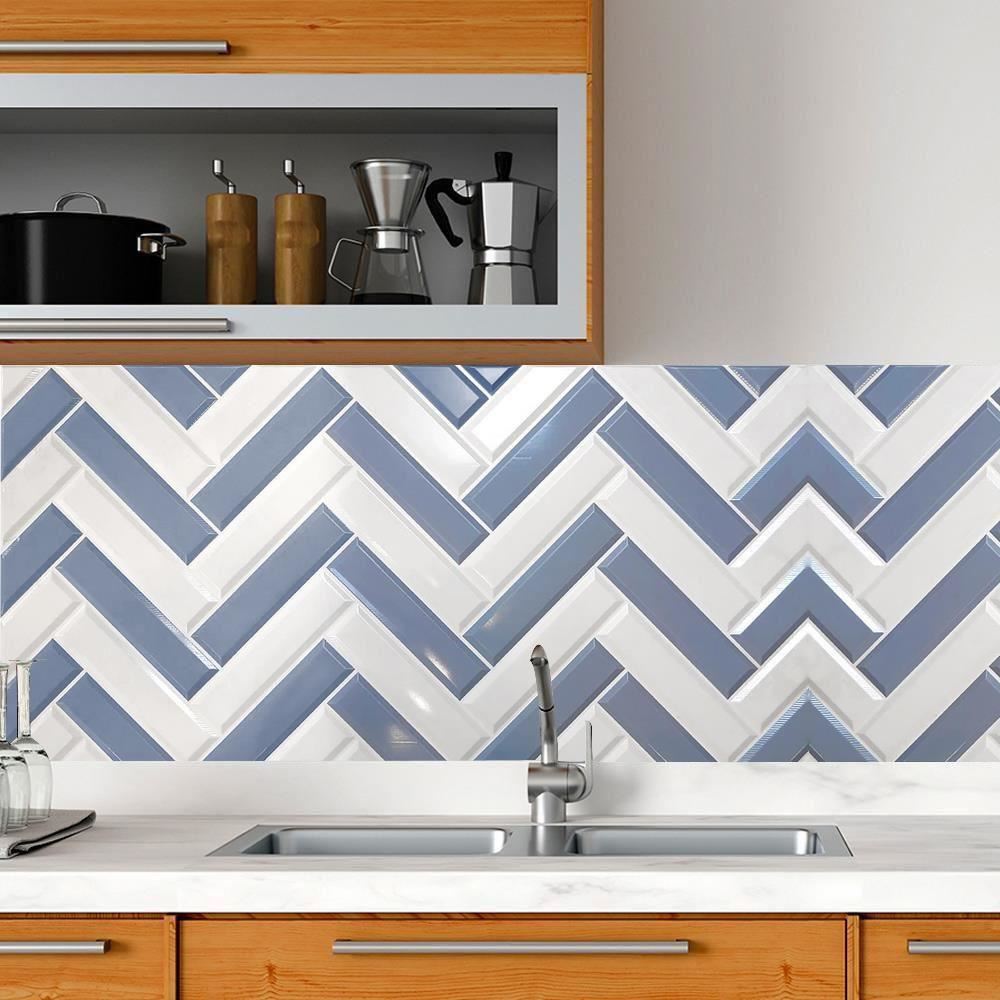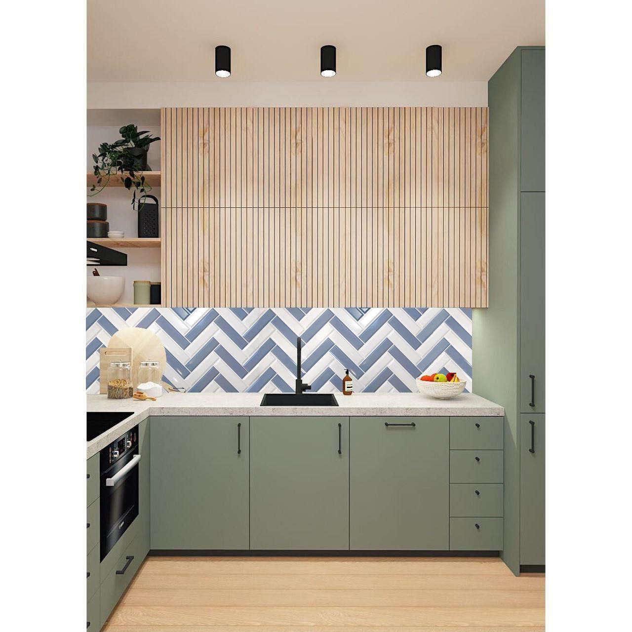 Panou decorativ, PVC, model zig-zag 3D, alb-albastru, 96x48.5cm