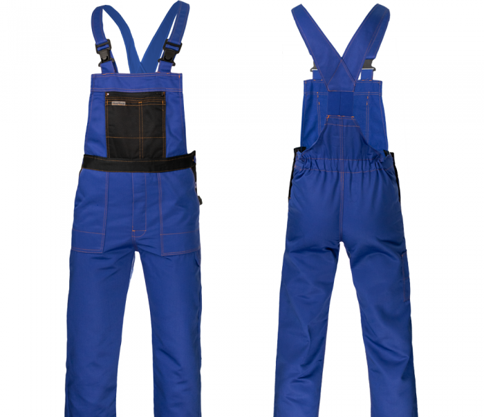 Pantaloni de lucru cu pieptar, salopeta, albastru, model Grandmaster, 182 cm, marimea XL