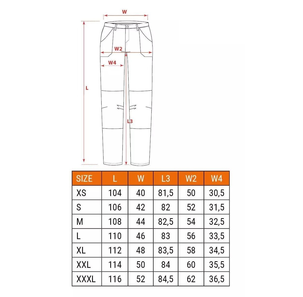 - Mobilitate excelenta: Materialul elastic in 4 directii (92% nailon, 8% spandex) se adapteaza perfect miscarilor pentru confort sporit in timpul lucrului