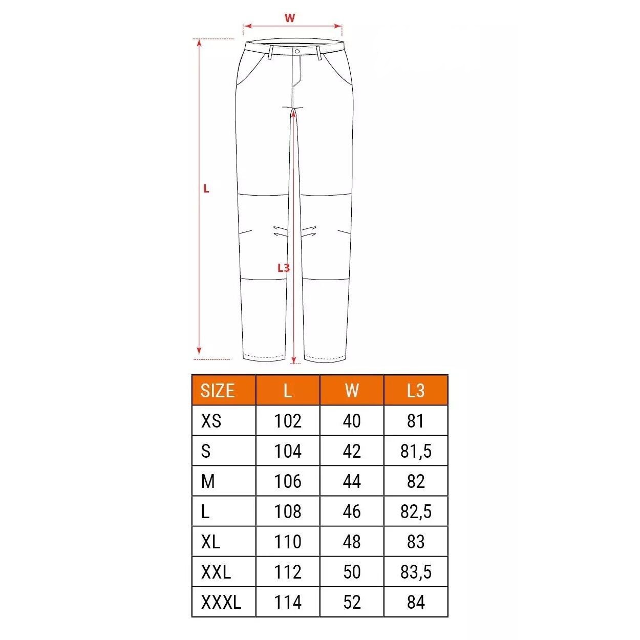 - Un continut de trei procente de elastan asigura libertate de miscare si minimizeaza senzatia de strangere atunci cand purtati pantalonii de lucru.