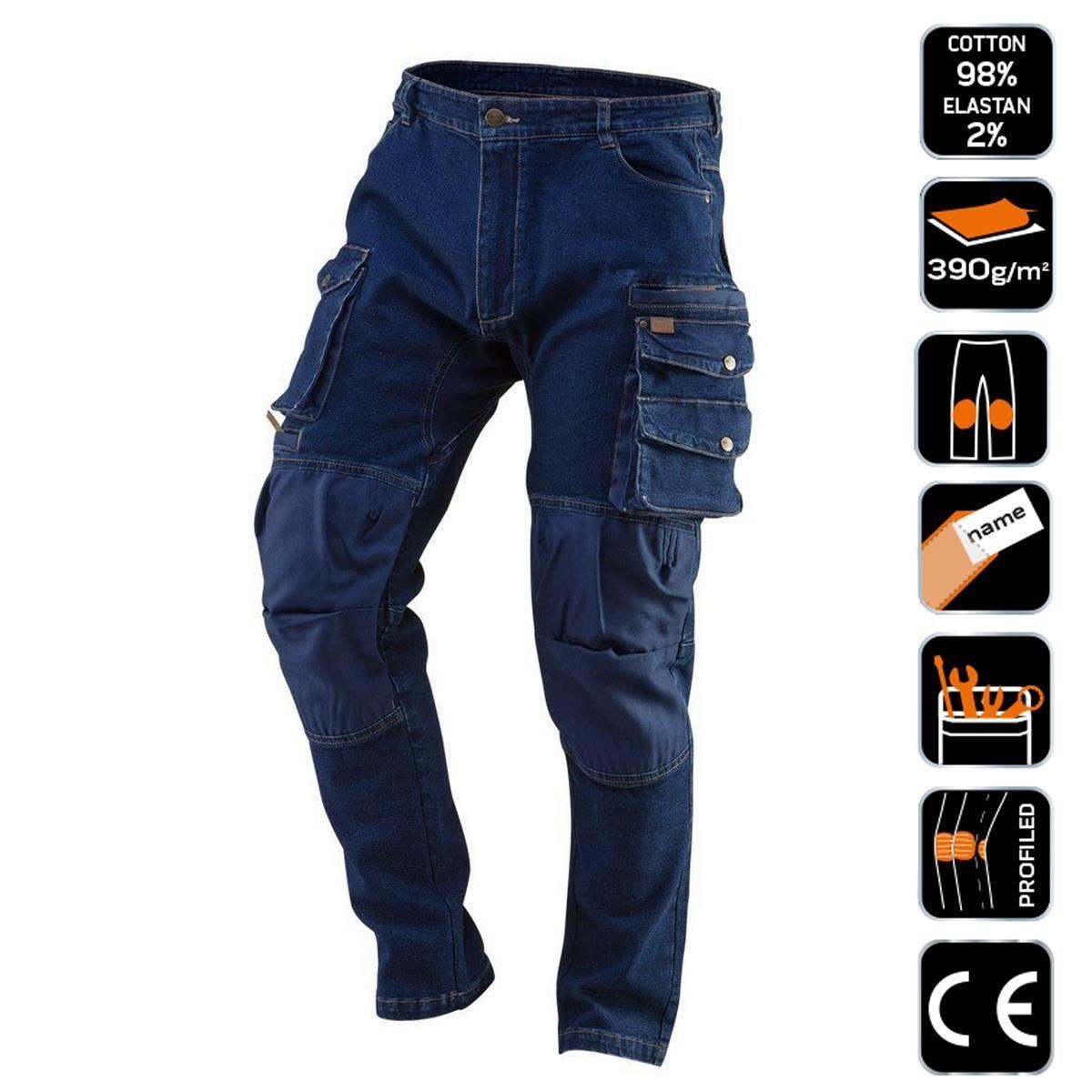 Pantaloni de lucru tip blugi, cu intariri pentru genunchi, model Denim, marimea S/48, NEO