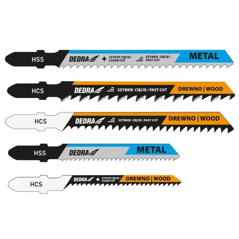 Panza, lama, fierastrau pendular, pentru lemn, metal, HCS si HSS, set 5 buc, Dedra