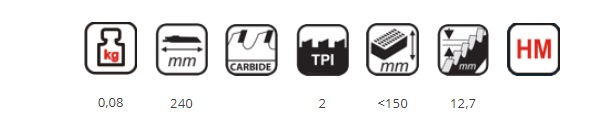- Design optimizat al lamei: Lungimea de 240 mm permite taierea adanca si precisa in materiale groase