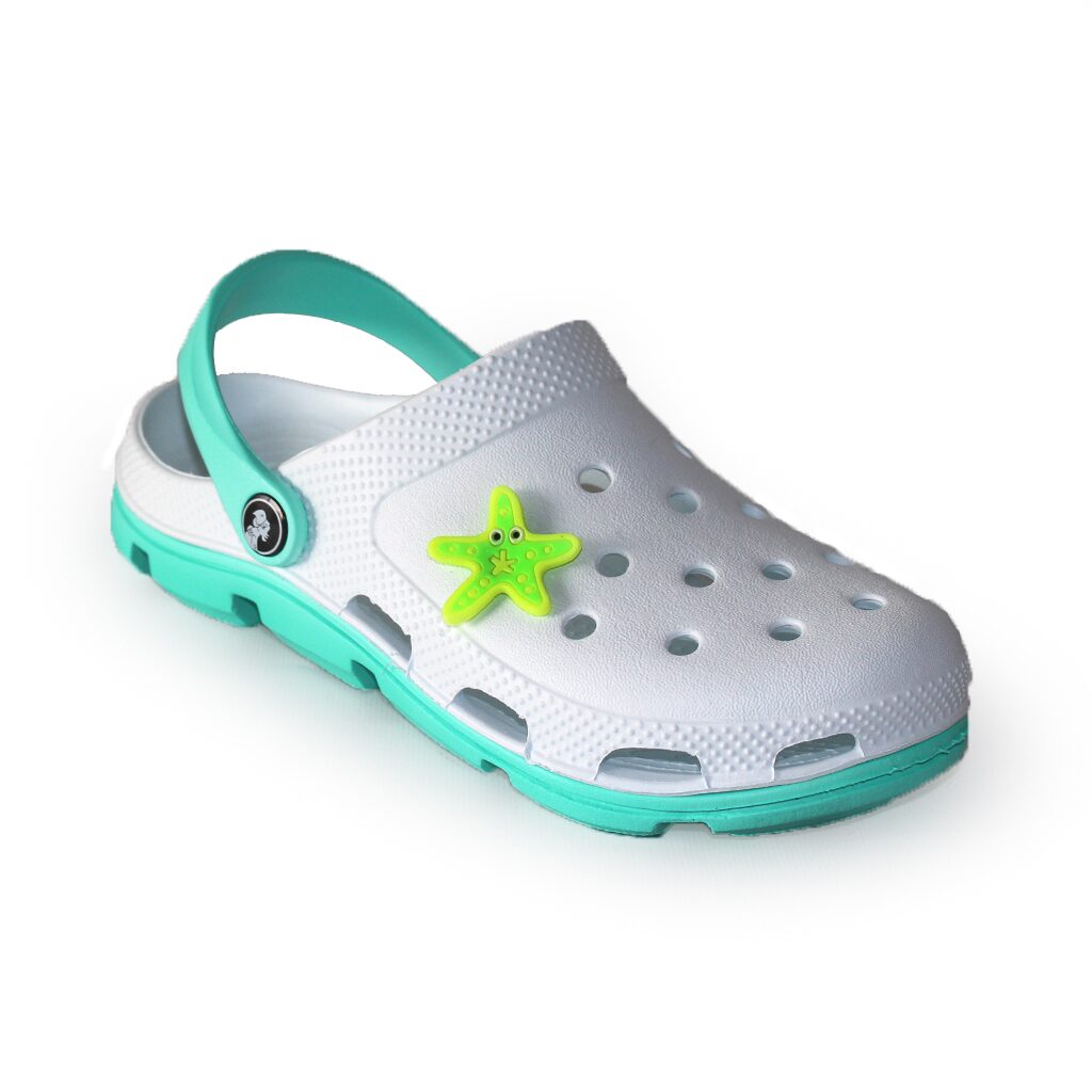 Papuci/saboti, clogs, pentru femei, spuma EVA, alb si turcoaz, marimea 40, Jose Amorales