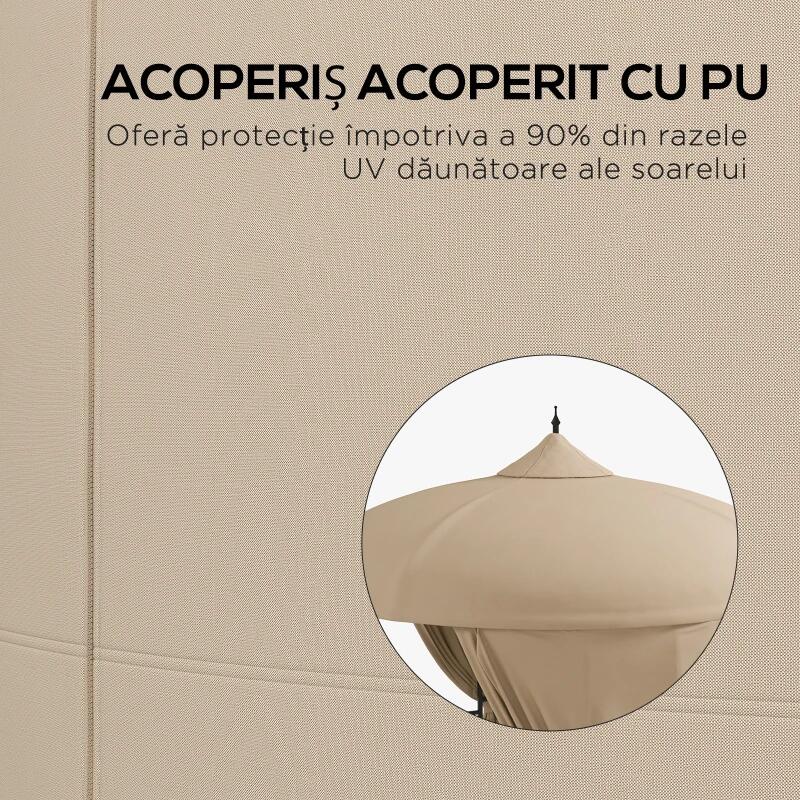 - Design elegant si distinctiv: Forma rotunda in stil gazebo adauga un element estetic deosebit gradinii sau terasei