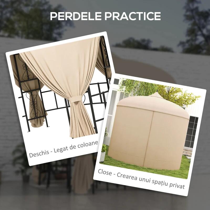 - Protectie solara si intimitate: Perdelele incluse ofera umbra si posibilitatea de a crea un spatiu mai privat