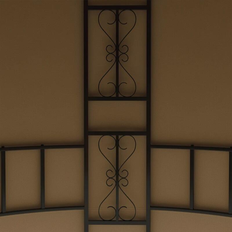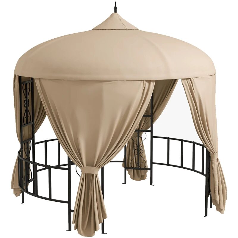 Pavilion/foisor pentru gradina/terasa, rotund, stil gazebo, cadru metalic, cu perdele, bej, 3x2.85 m
