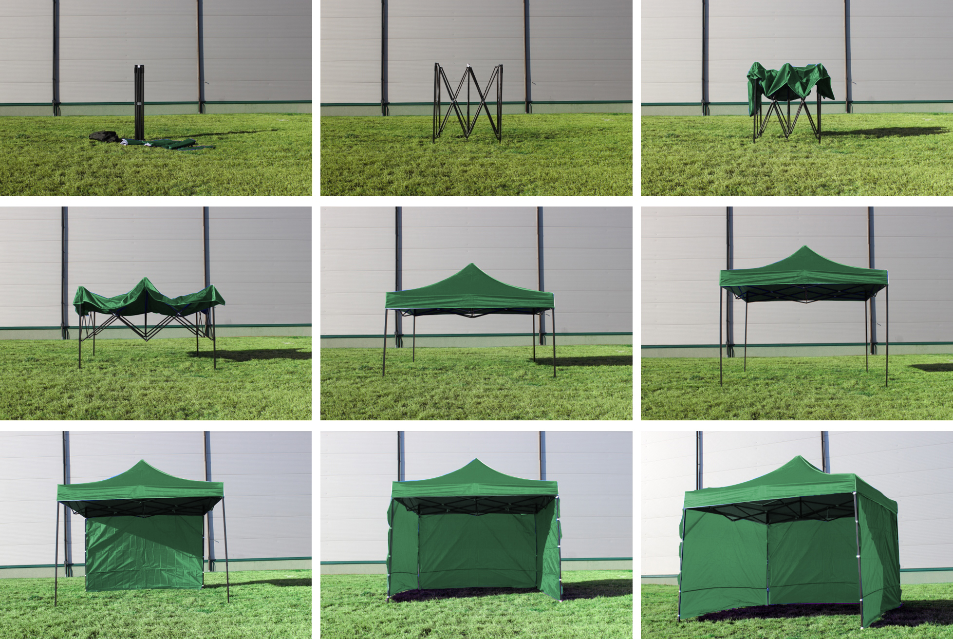 Pavilion pentru gradina/comercial, cadru metalic, 3 pereti, pliabil, verde, 3x3x3.16 m