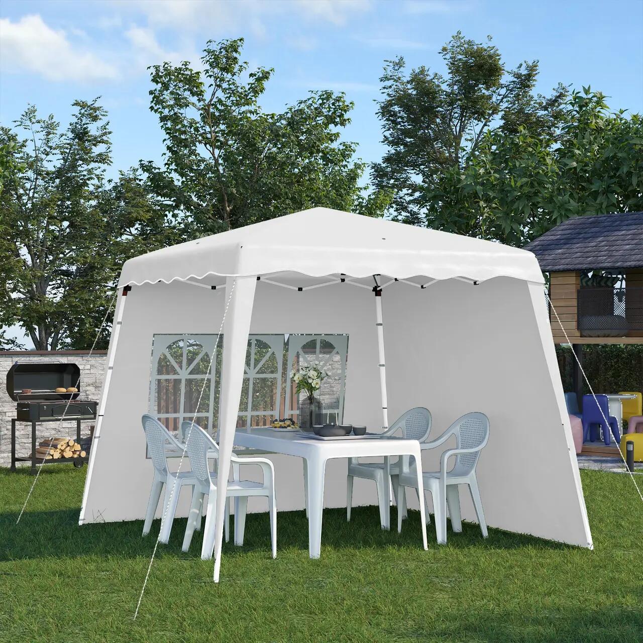 Pavilion pentru gradina/comercial, cadru otel, 2 pereti, pliabil, cu geanta, inaltime reglabila, alb, 2.89x2.89x2.50 m