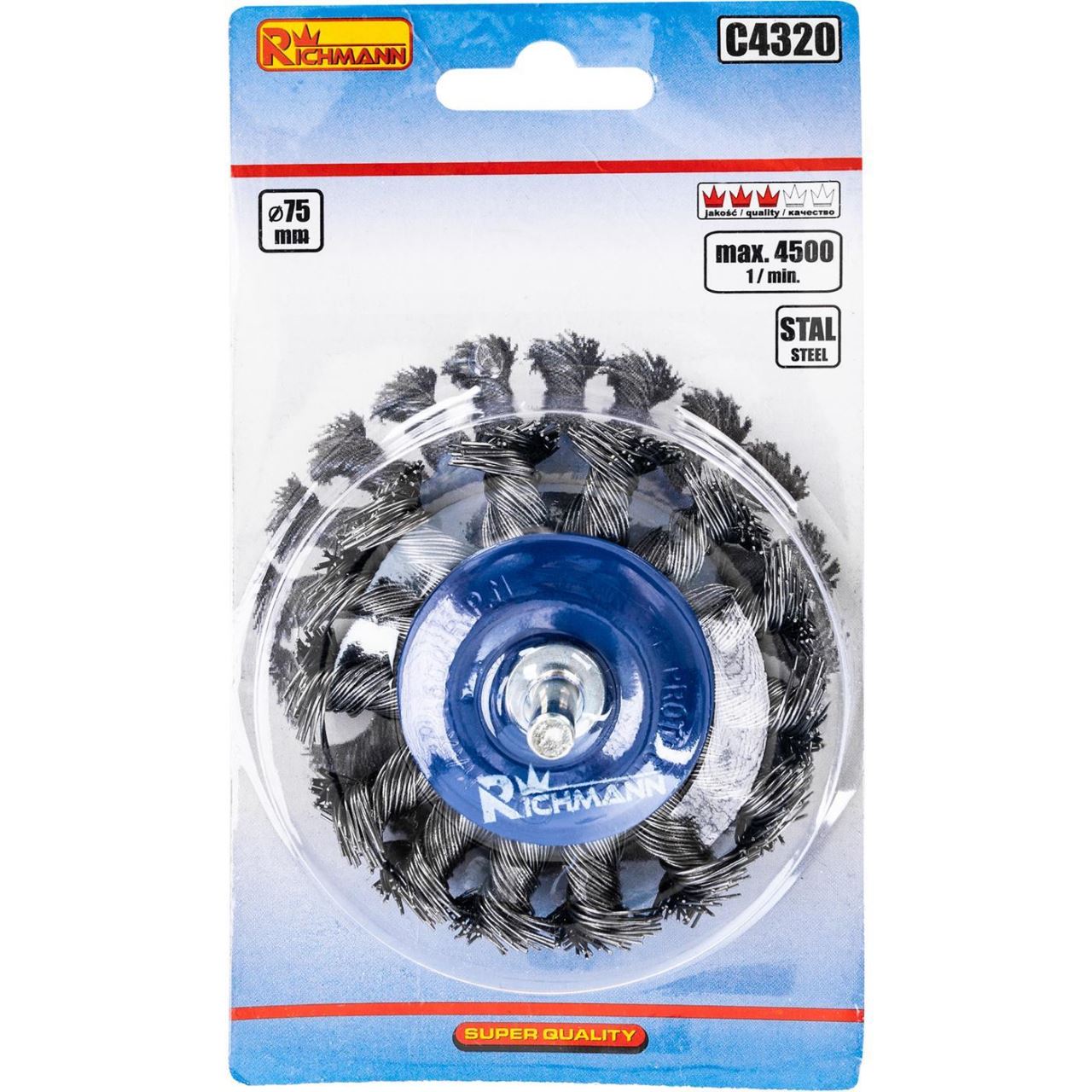 Perie sarma otel, circulara, cu toroane, cu tija, 75 mm, Richmann