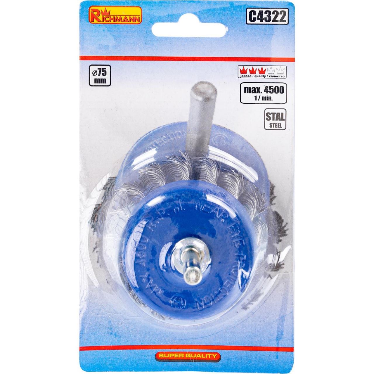 Perie sarma otel, tip cupa, cu toroane, tija, 75 mm, Richmann