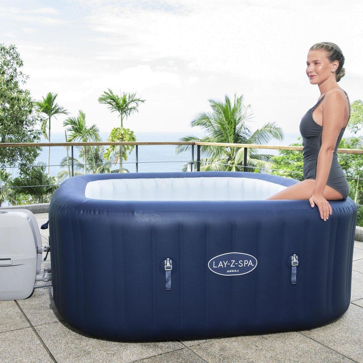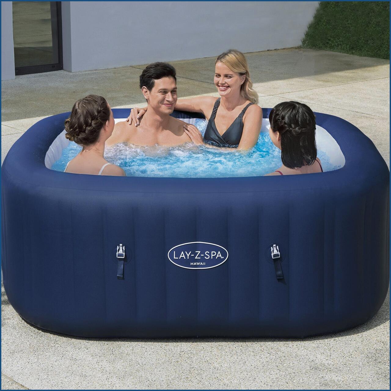 Piscina jacuzzi, gonflabila, patrata, cu pompa si filtru, prelata acoperire, dozator, bleumarin si alb, 840 L, 4-6 persoane, 180x180x71 cm, Bestway Lay-Z Spa