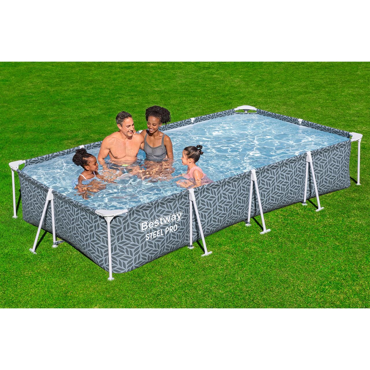 Piscina structura metalica, dreptunghiulara, cu filtru si pompa, gri, 366x201x66 cm, Bestway Power Steel